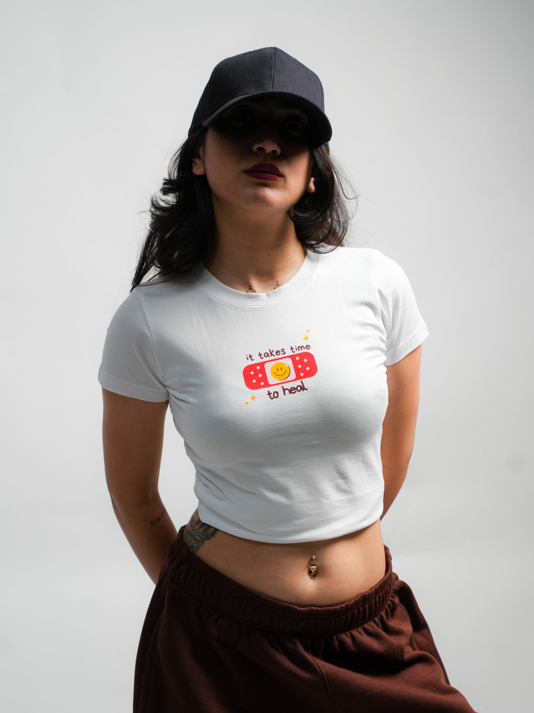 Tata BT21 : Burger Bae Round Neck Crop Baby Tee For Women