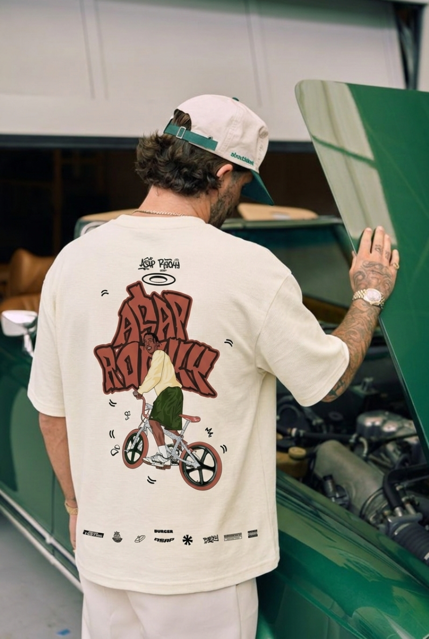 Rep the iconic swagger of A$AP Rocky with this Cartoon Art Drop-Sleeved Tee, crafted for...