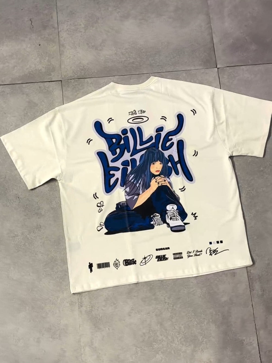 Channel Billie Eilish’s bold and edgy vibe with this Cartoon Art Drop-Sleeved Tee, designed for...