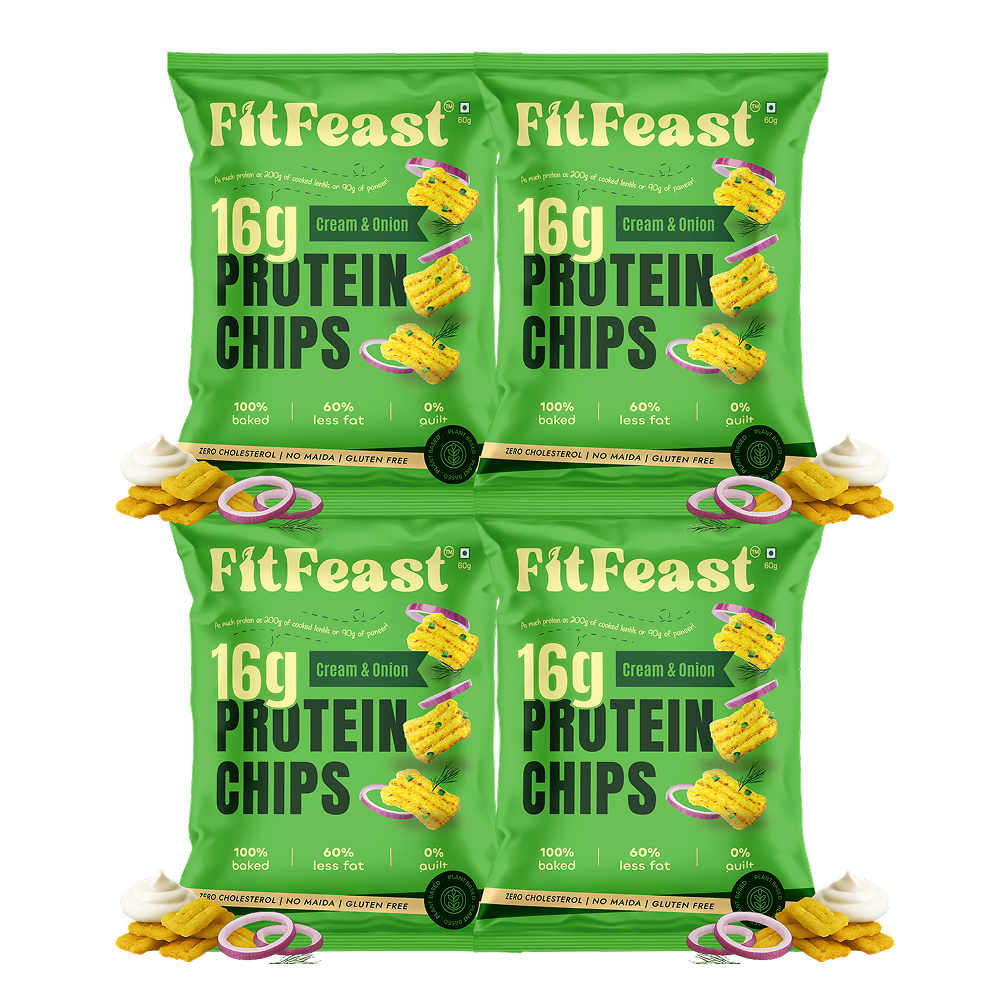 FitFeast Cream & Onion Protein Chips — Pack of 4 ✅ Baked, Not Fried —...