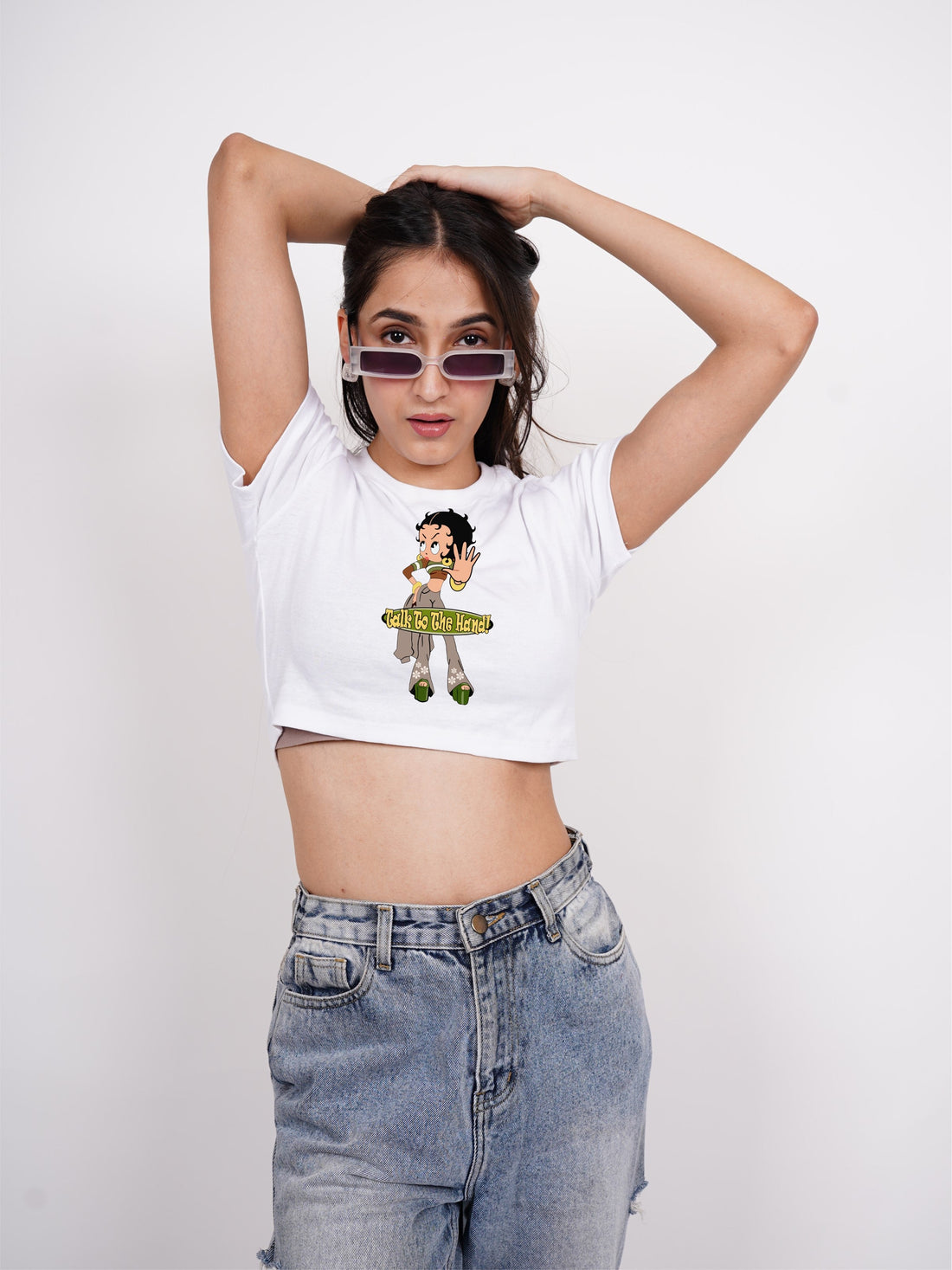 Betty Boop Talk To The Hand : Burger Bae Round Neck Crop Baby Tee For Women