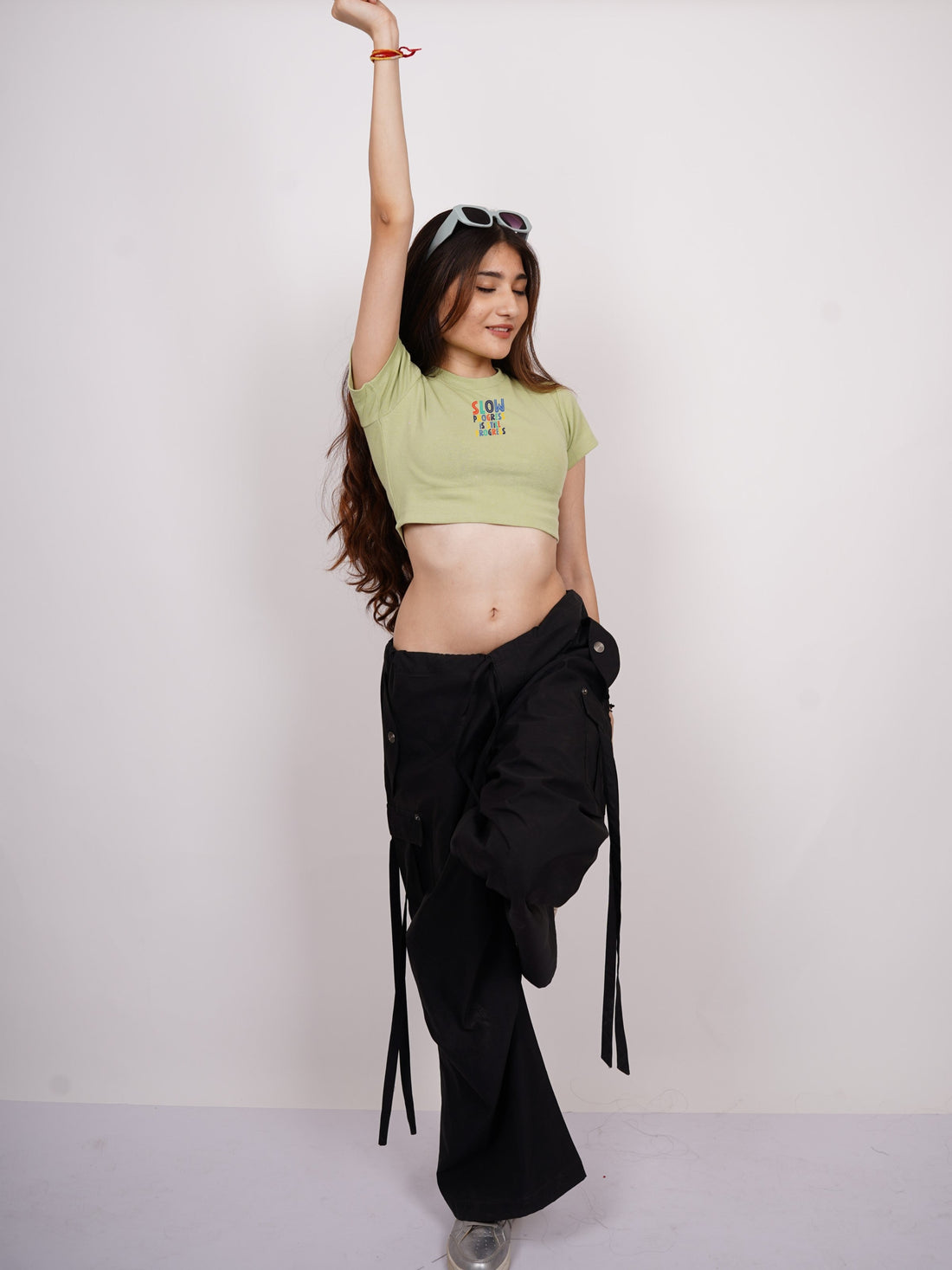 Slow Progress Is Still Progress : Burger Bae Round Neck Crop Baby Tee For Women