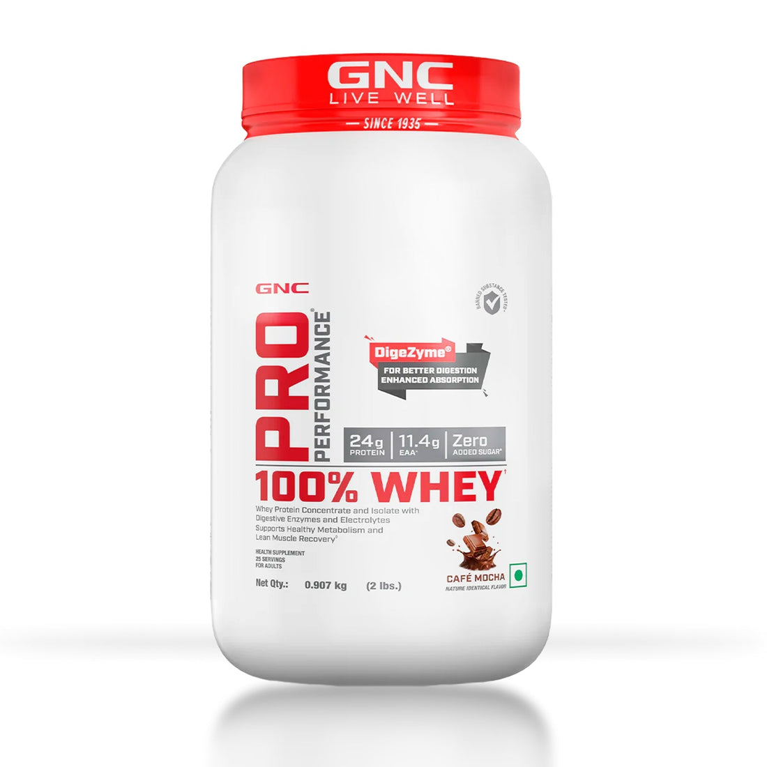 GNC Pro Performance 100% Whey Protein Powder | Boosts Strength & Endurance | Builds Lean Muscles | Fastens Muscle Recovery | Formulated In USA | 24g Protein | 5.5g BCAA | Cafe Mocha | 2 lbs