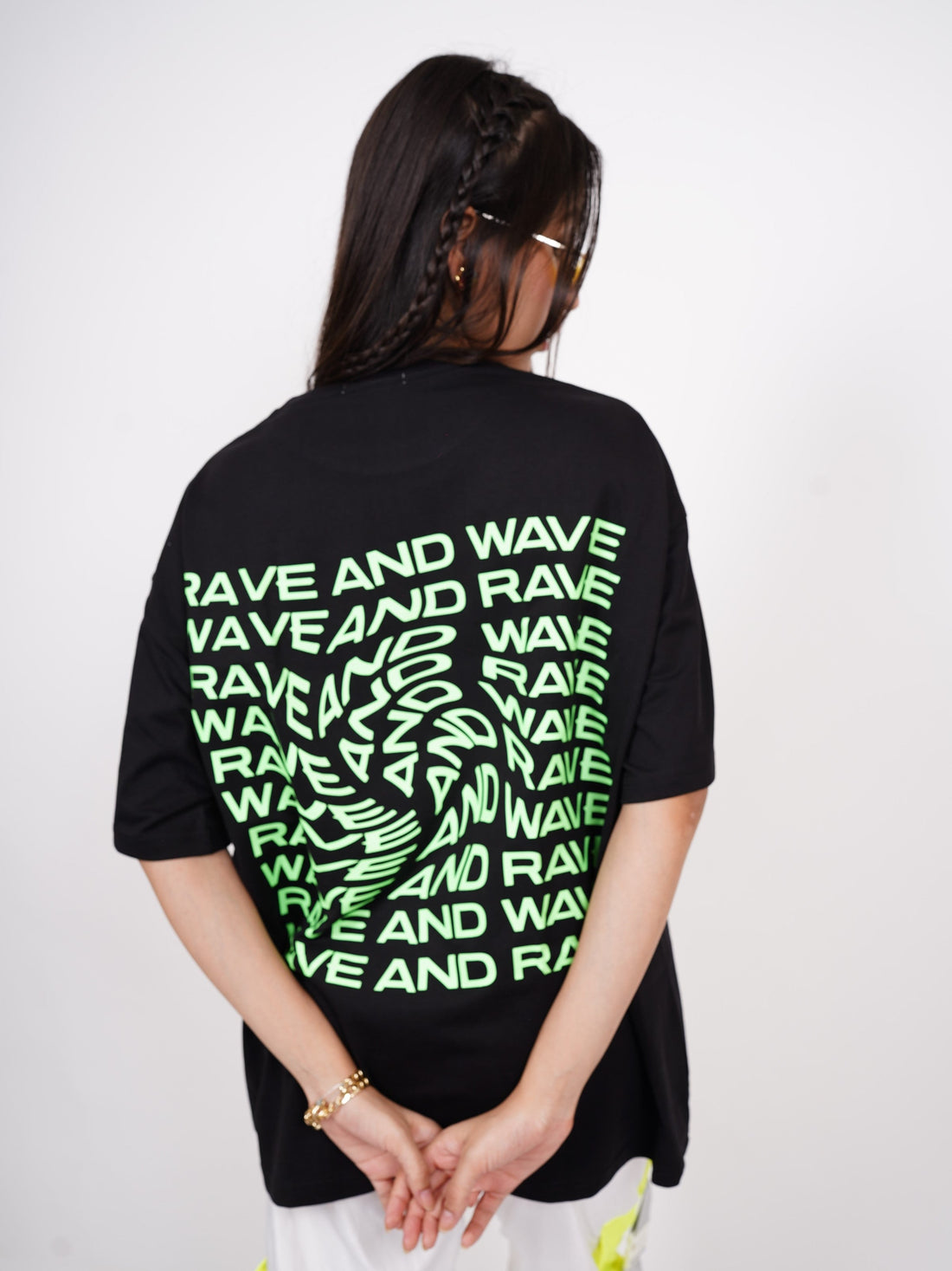 Rave & Wave (Green Glow) Drop:Sleeved Tee For Men and Women