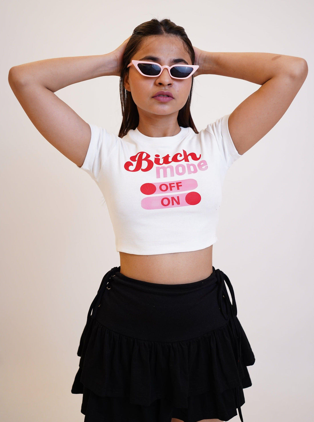 Bitch mode : Burger Bae Round Neck Crop Baby Tee For Women
