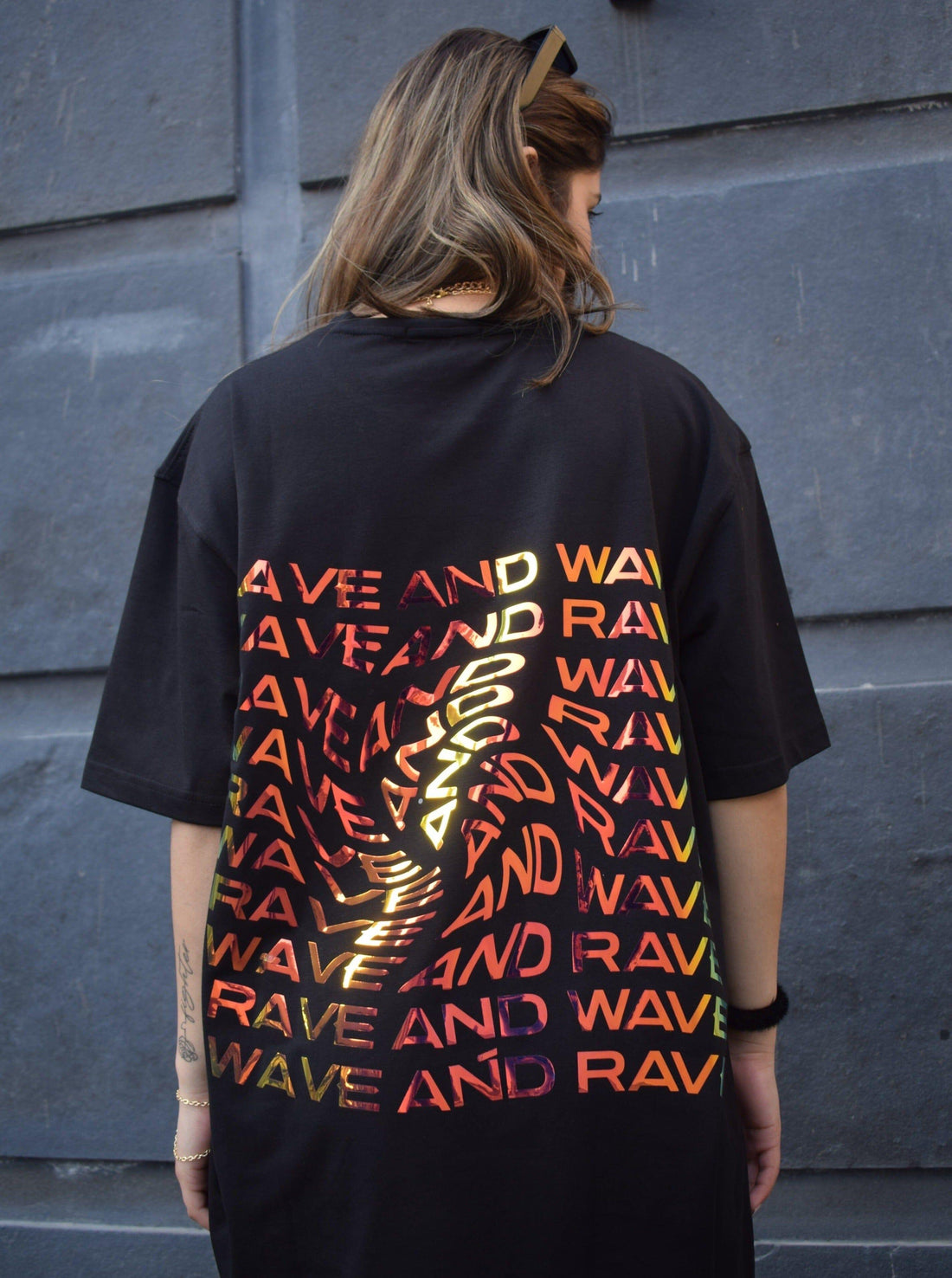 Make a bold statement with the Rave & Wave Holographic Tee designed for both men...