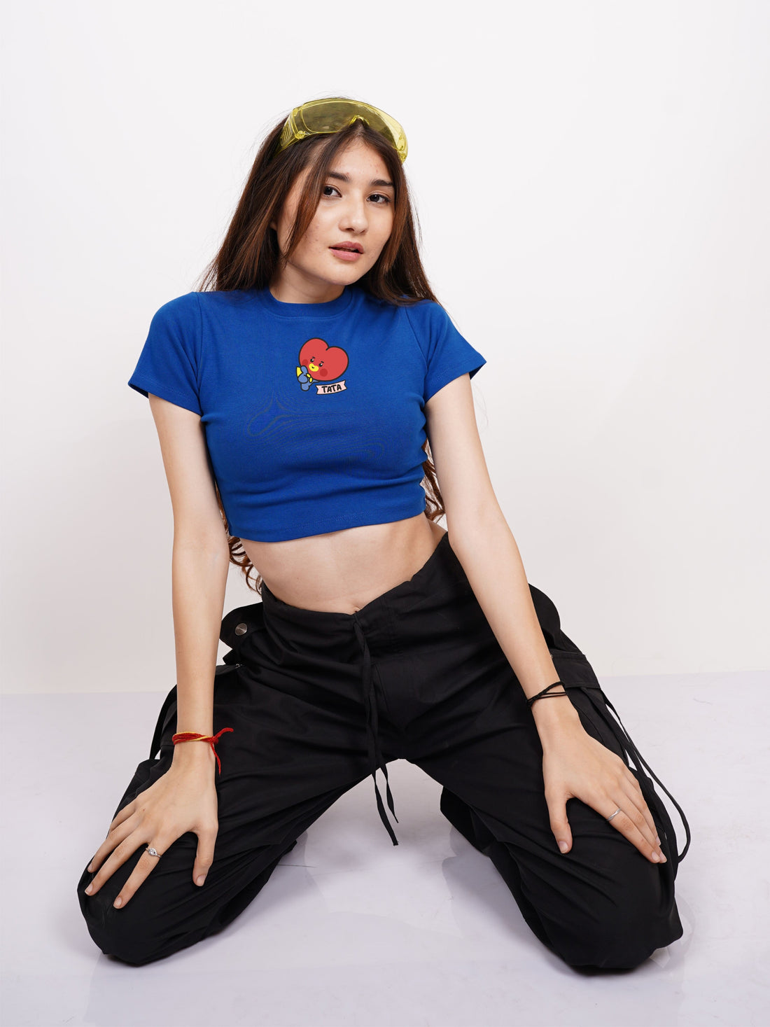 Tata BT21 : Burger Bae Round Neck Crop Baby Tee For Women