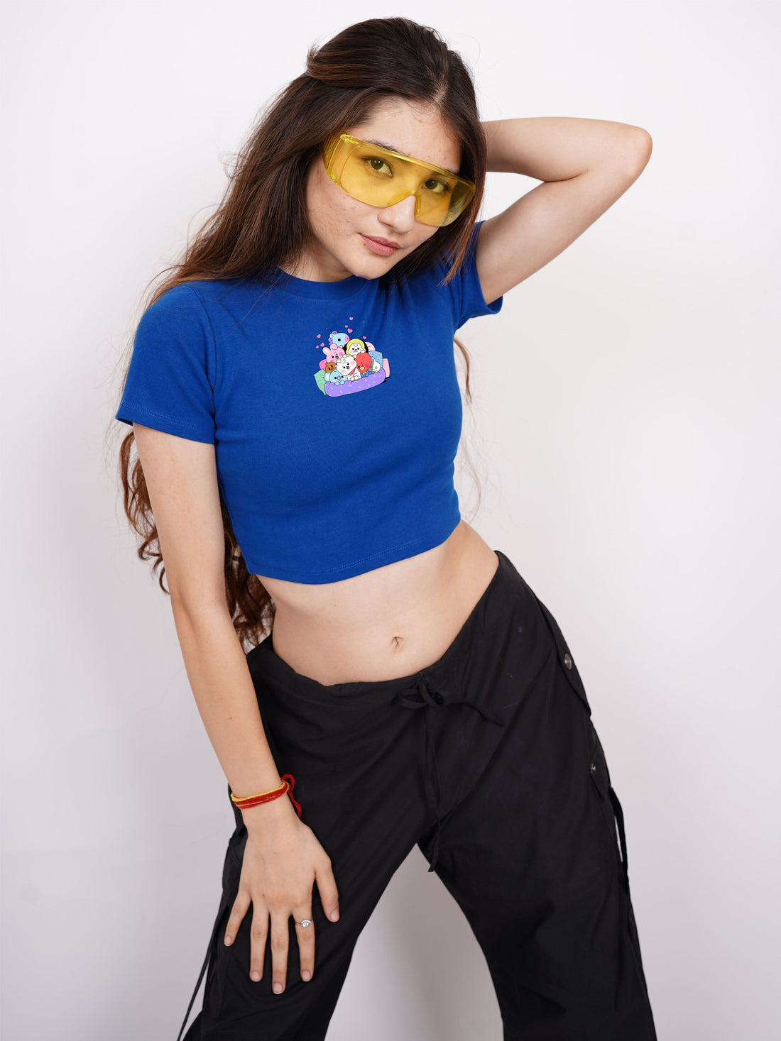 BT21 Friends : Burger Bae Round Neck Crop Baby Tee For Women