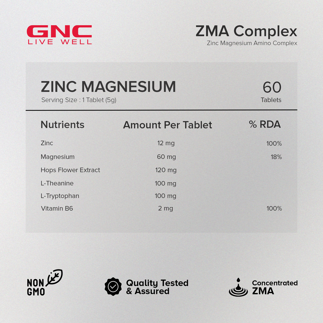 GNC Pro Performance Zinc Magnesium Amino (ZMA) Complex 60 Tablets -