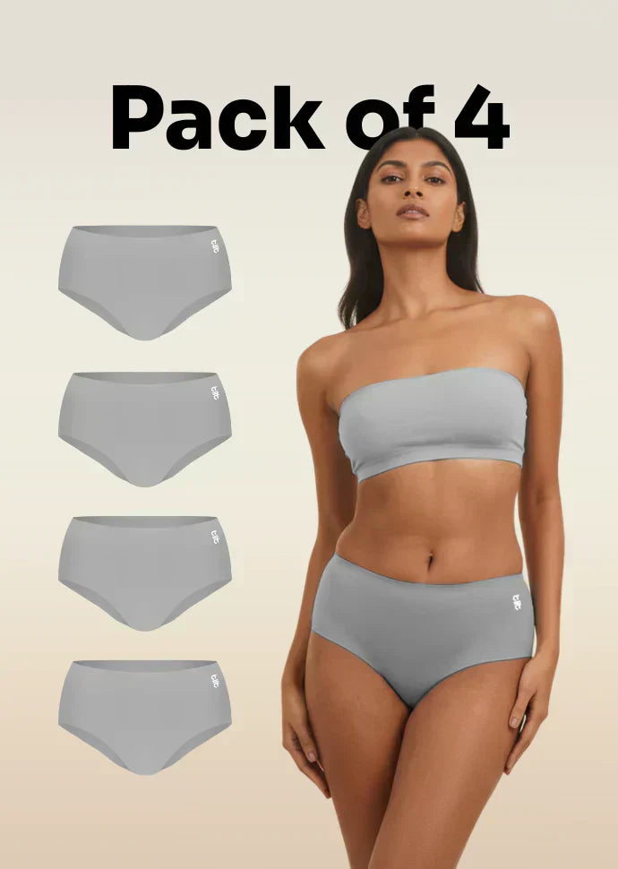 4 Pack - Grey Mid-waist Absorbent Underwear