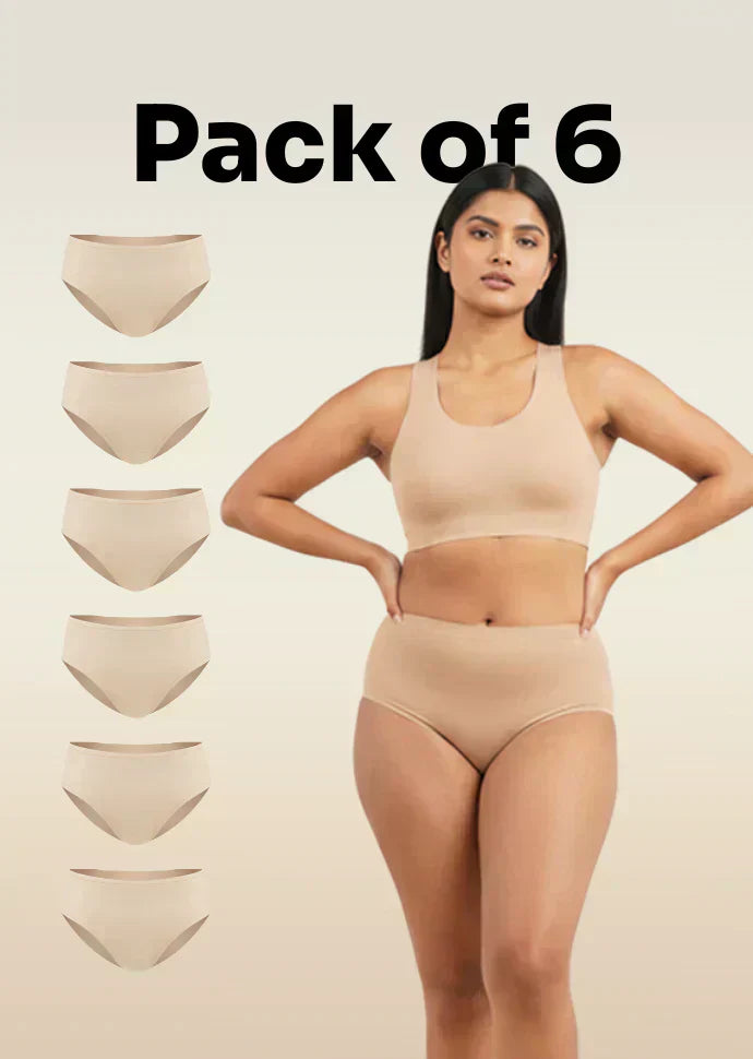 6 Pack - Beige Mid-waist Absorbent Underwear