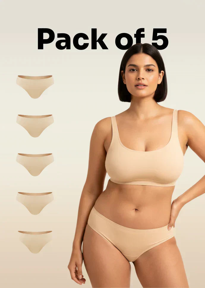 5 Pack - Beige Mid-waist Absorbent Underwear