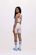 🍦Co-ord Set: Soft Girl Era Sports Bra + Shorts Set in Blush Pink