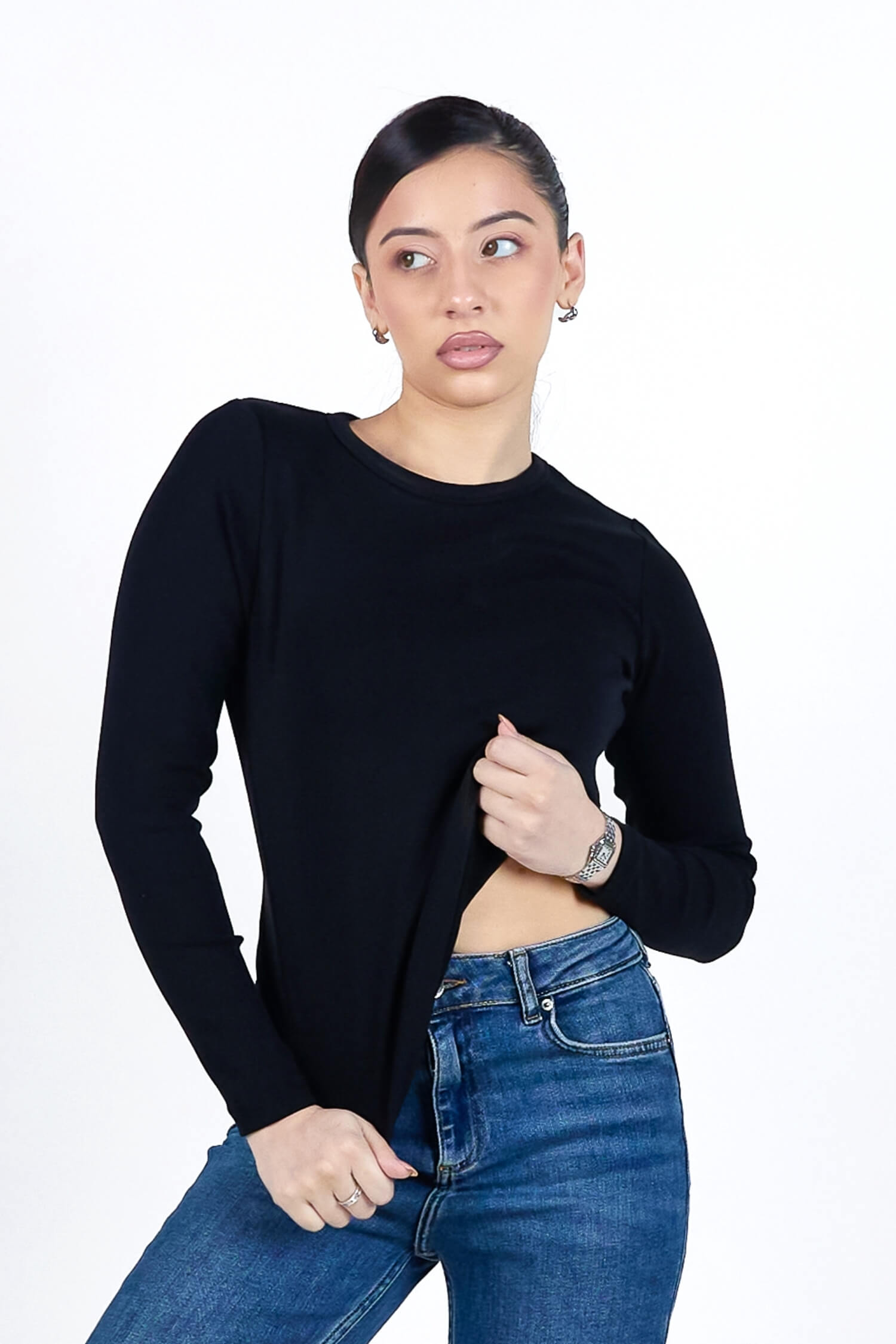 Why You Need This Long sleeves, minus the drama. It’s soft, stretchy, and feels like your skin but smoother. Whether you’re in freezing AC or braving a breezy evening, this tee’s got your back (and arms).