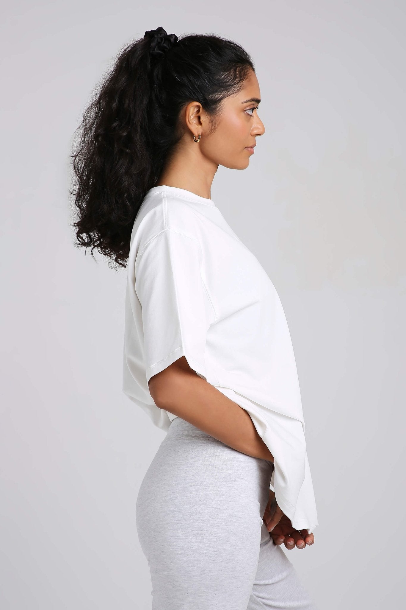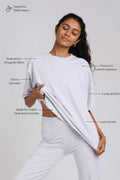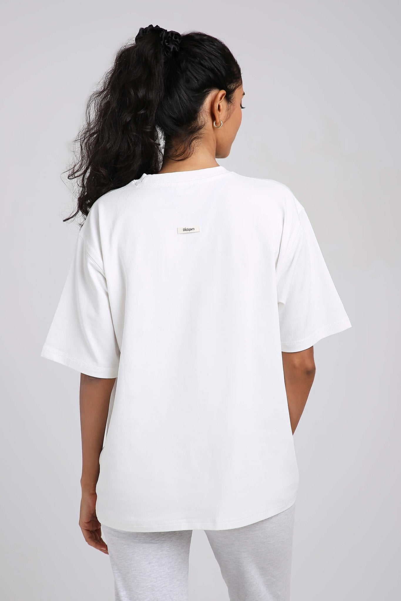 Styling tip: Half-tuck into high-waisted jeans for a clean streetwear vibe, knot at the waist over bike shorts for a workout-to-brunch fit, or wear loose with our Oversized Loungers for a monochrome moment.