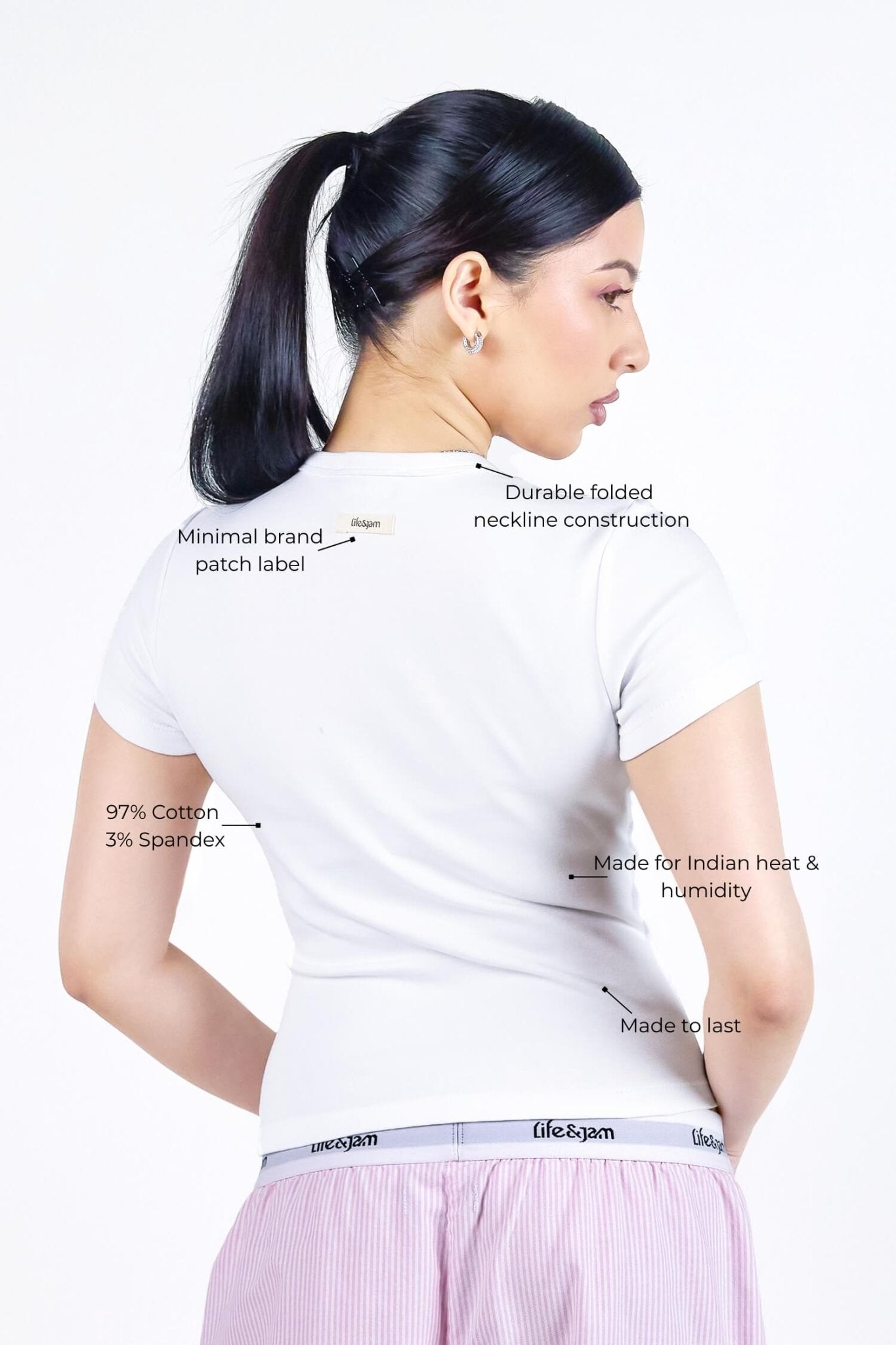 Why You Need This: It’s your everyday tee, but better. The fit? Just right. The feel? Like a second skin. This one moulds to your shape, never sticks, and keeps up with your 9AM to 9PM life. Add one to cart… and maybe another for laundry day.