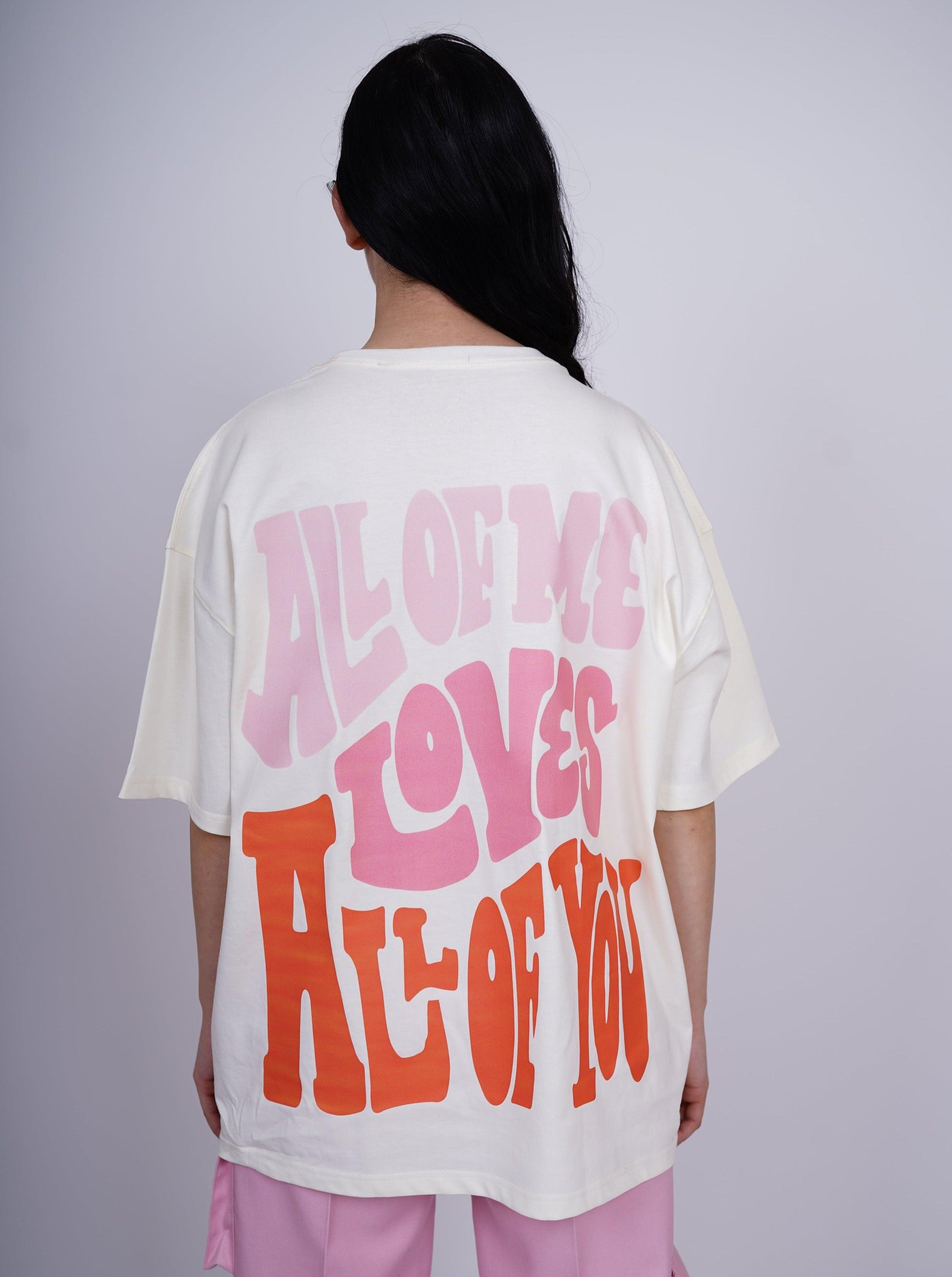 Embark on a journey of love and style with our fascinating drop-sleeved tee, featuring the heartfelt "All Of Me Loves All Of You" print. Designed with impeccable style, it beautifully captures the essence of deep affection. Its stylish flair and intricate details infuse romance into your wardrobe. Express your love and impeccable taste with this captivating fashion statement.