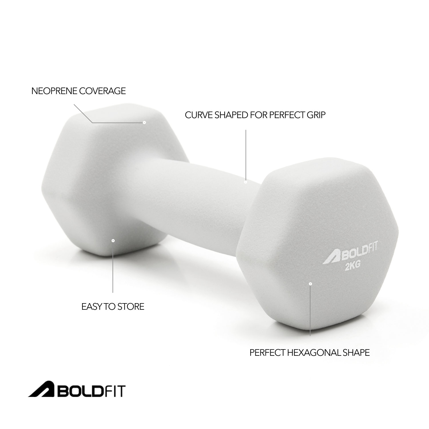 Boldfit Neoprene Dumbbells 2kg Grey - Pack of 2