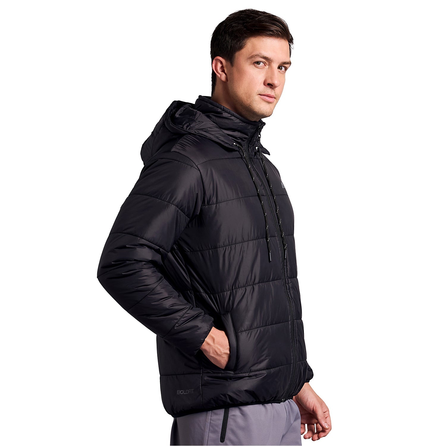 Boldfit Sherpa Nylon Puffer Jacket Solid Color - BFTBM4024S Black