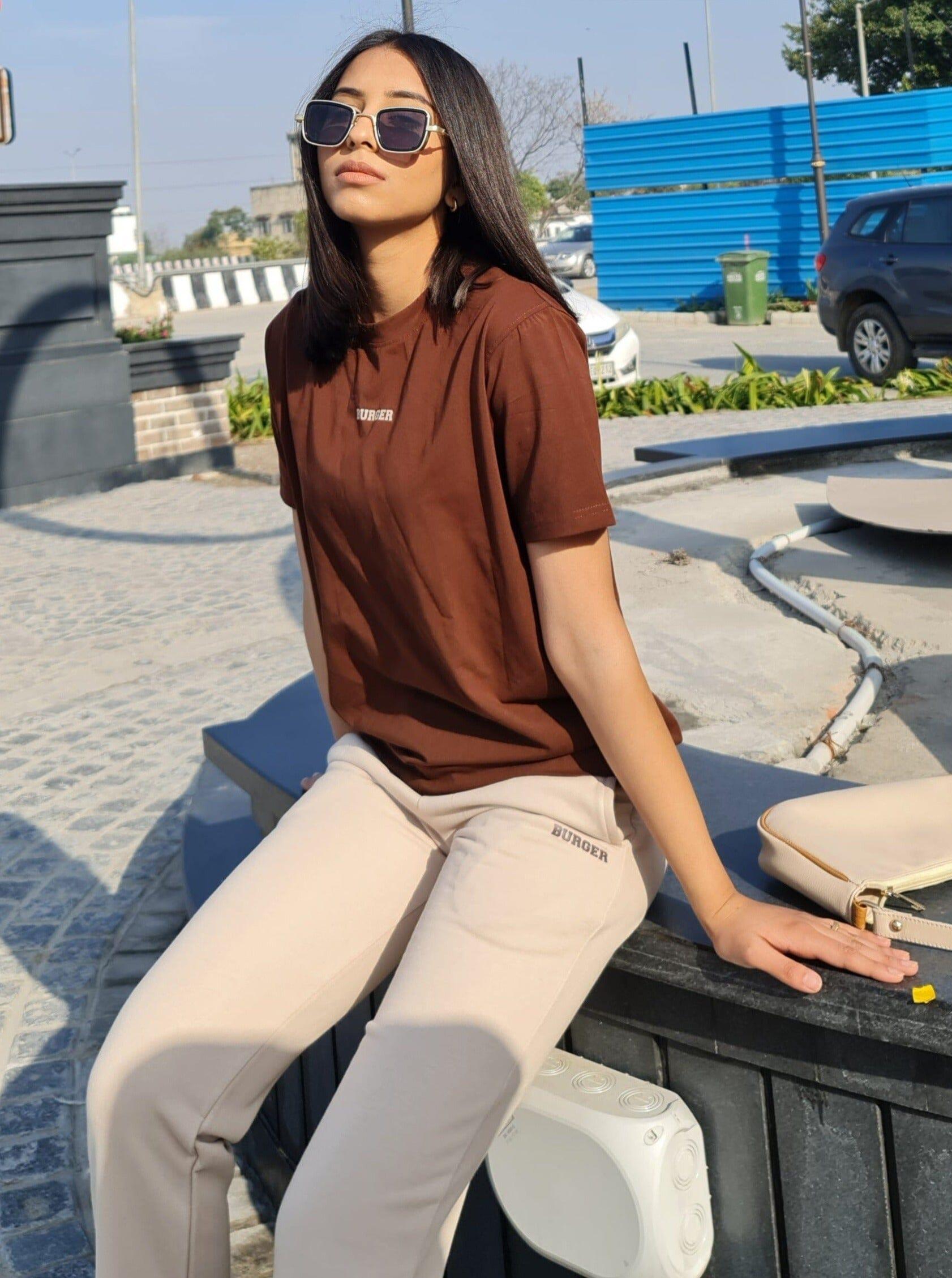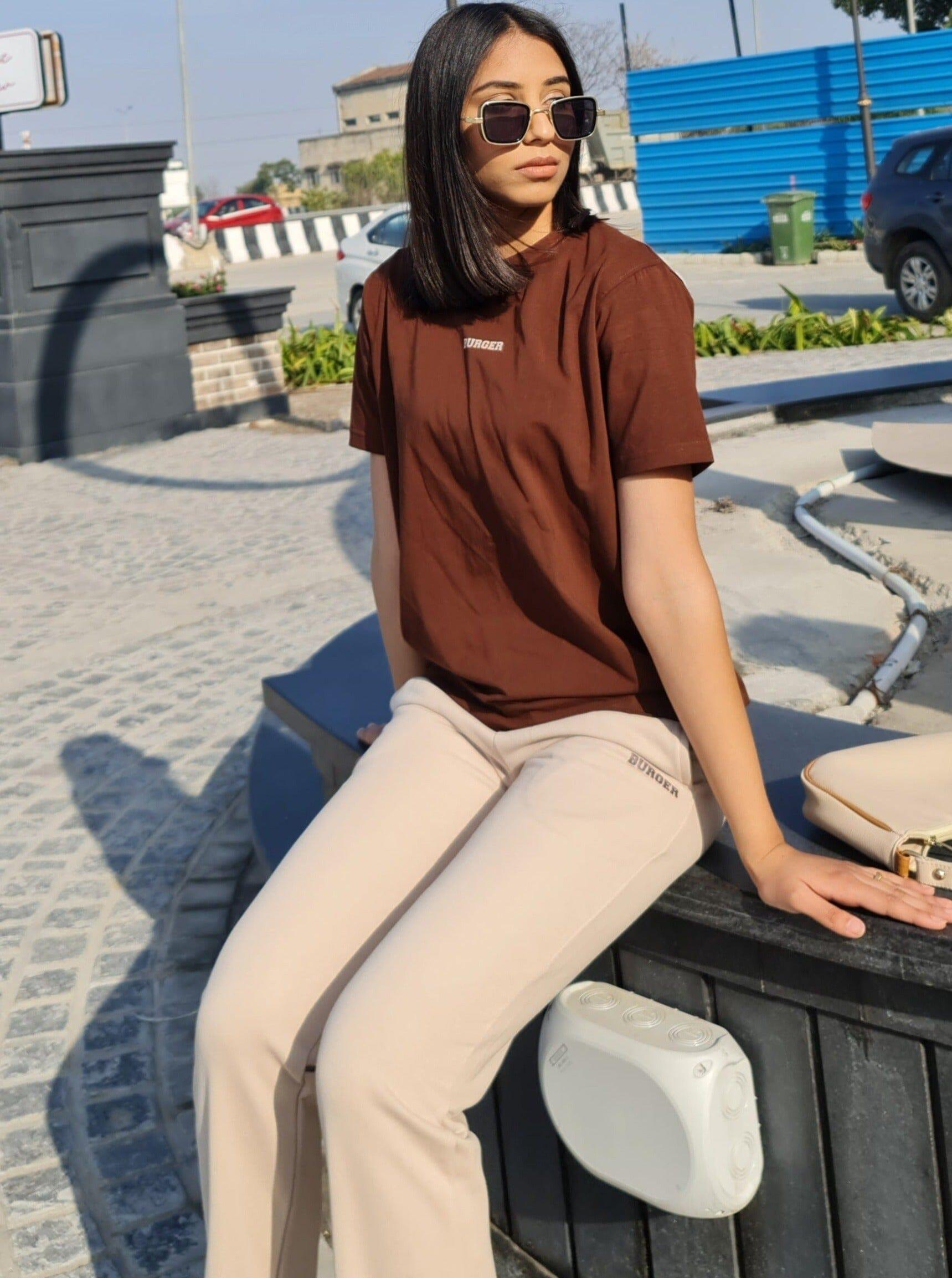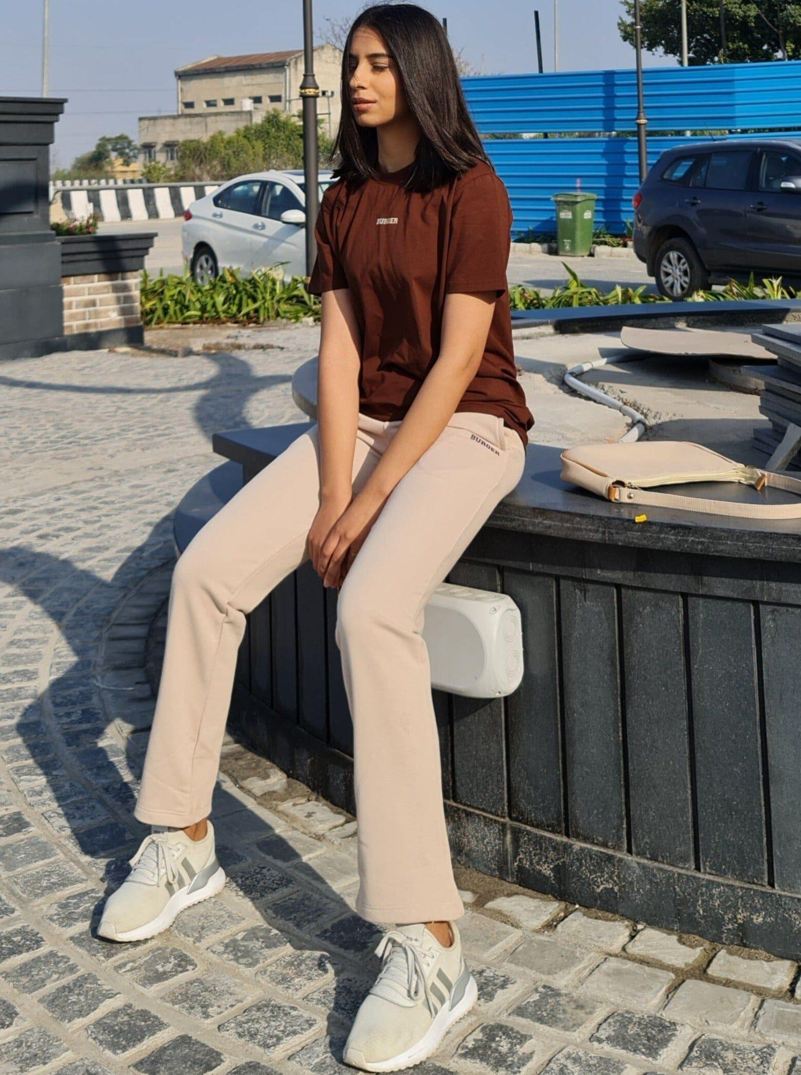BOMBay Set Coffee Brown Beige (Tee+Irish Track) For Women