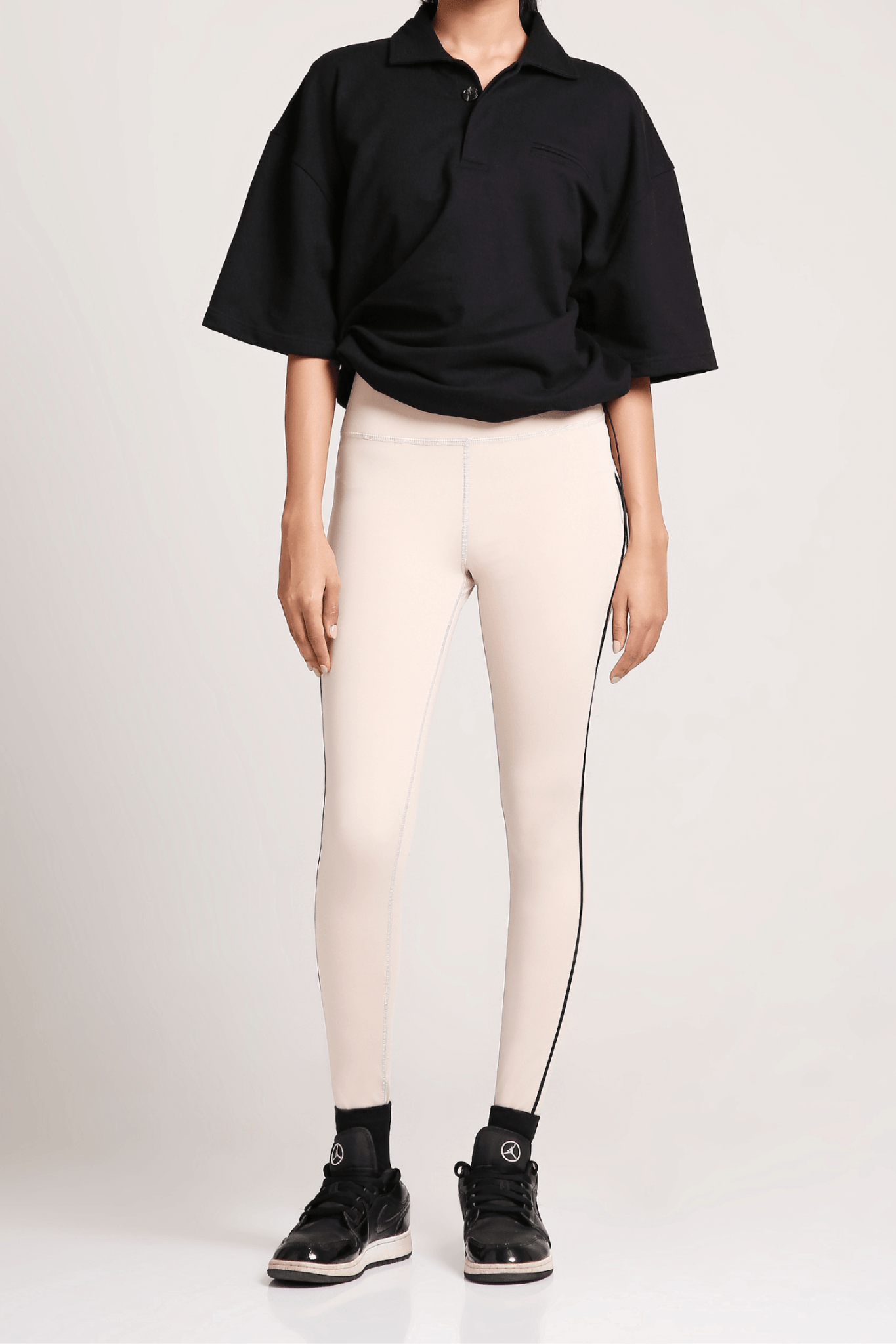 Styling Tip: For a sleek, put-together look, style this tee with tailored trousers or matching lounge pants, and adjust the waist for a cropped, cinched silhouette. Add minimalist sneakers and some silver jewelry for an elevated street style. Want to keep it casual? Pair it with high-waisted shorts, leaving the waist loose for a relaxed fit, and finish with chunky sneakers and a crossbody bag.