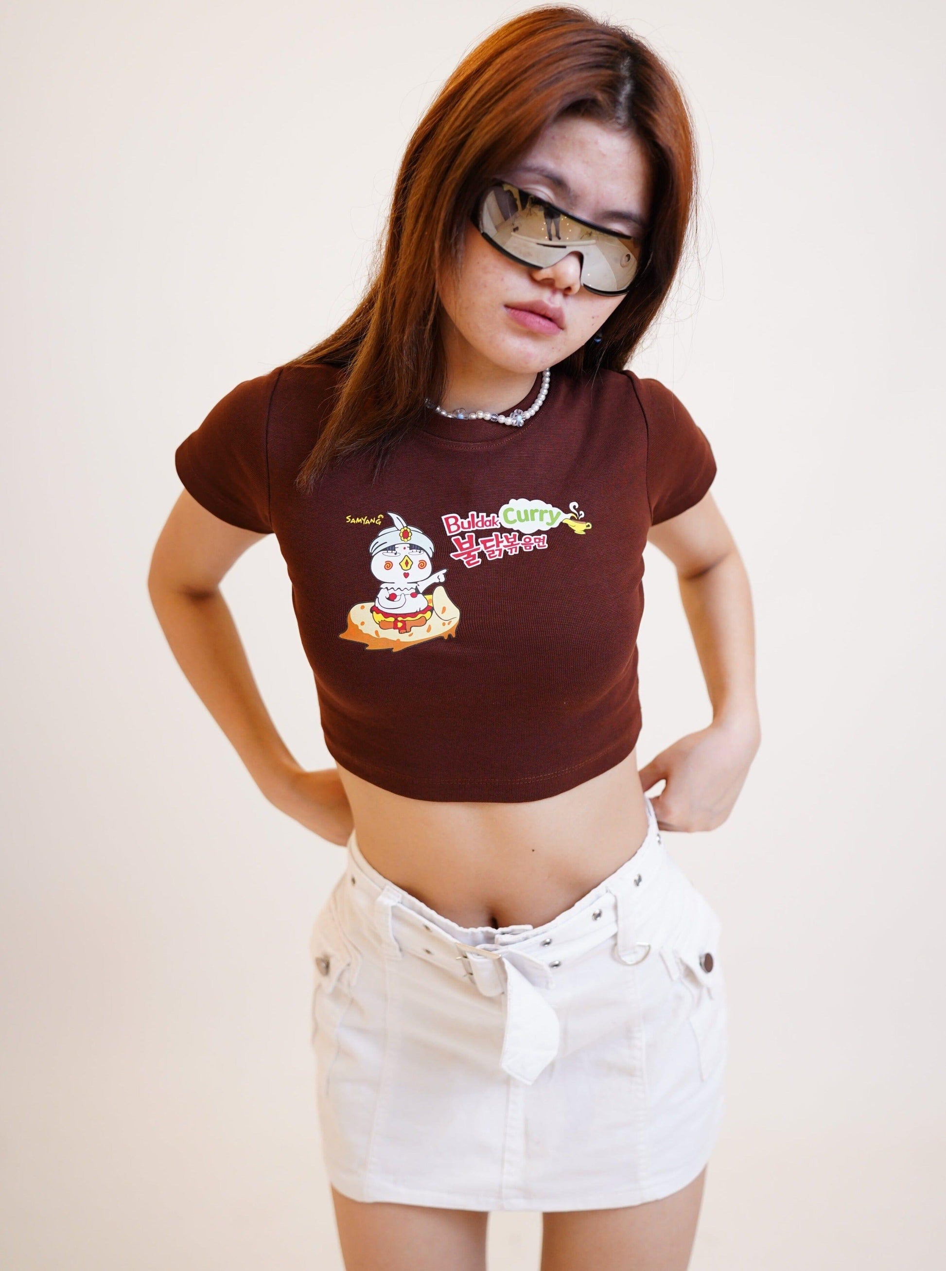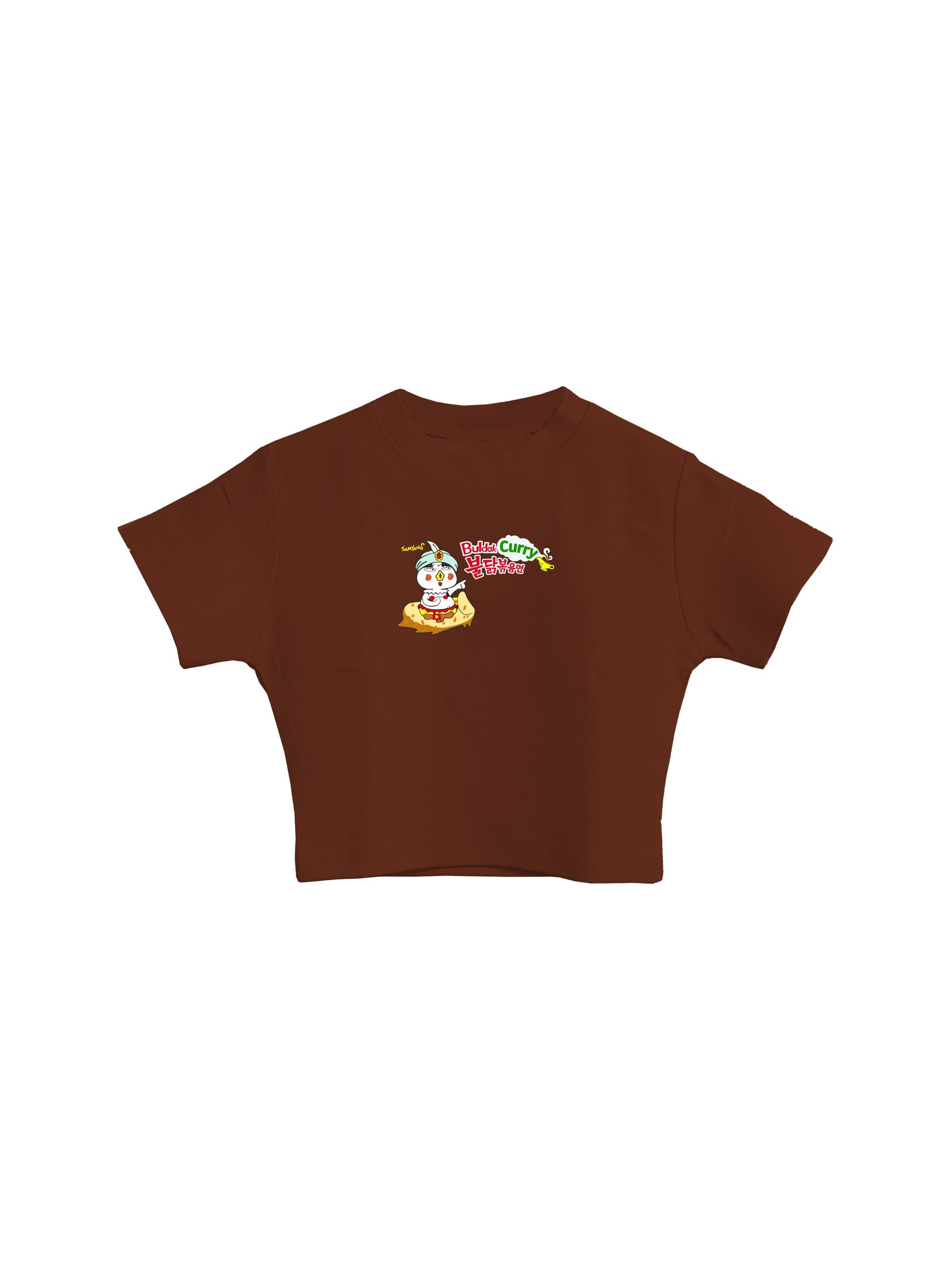 Introducing our Round Neck 'Buldak Remen Curry' Print Crop Tees, where fashion meets the spiciest trend in town!