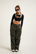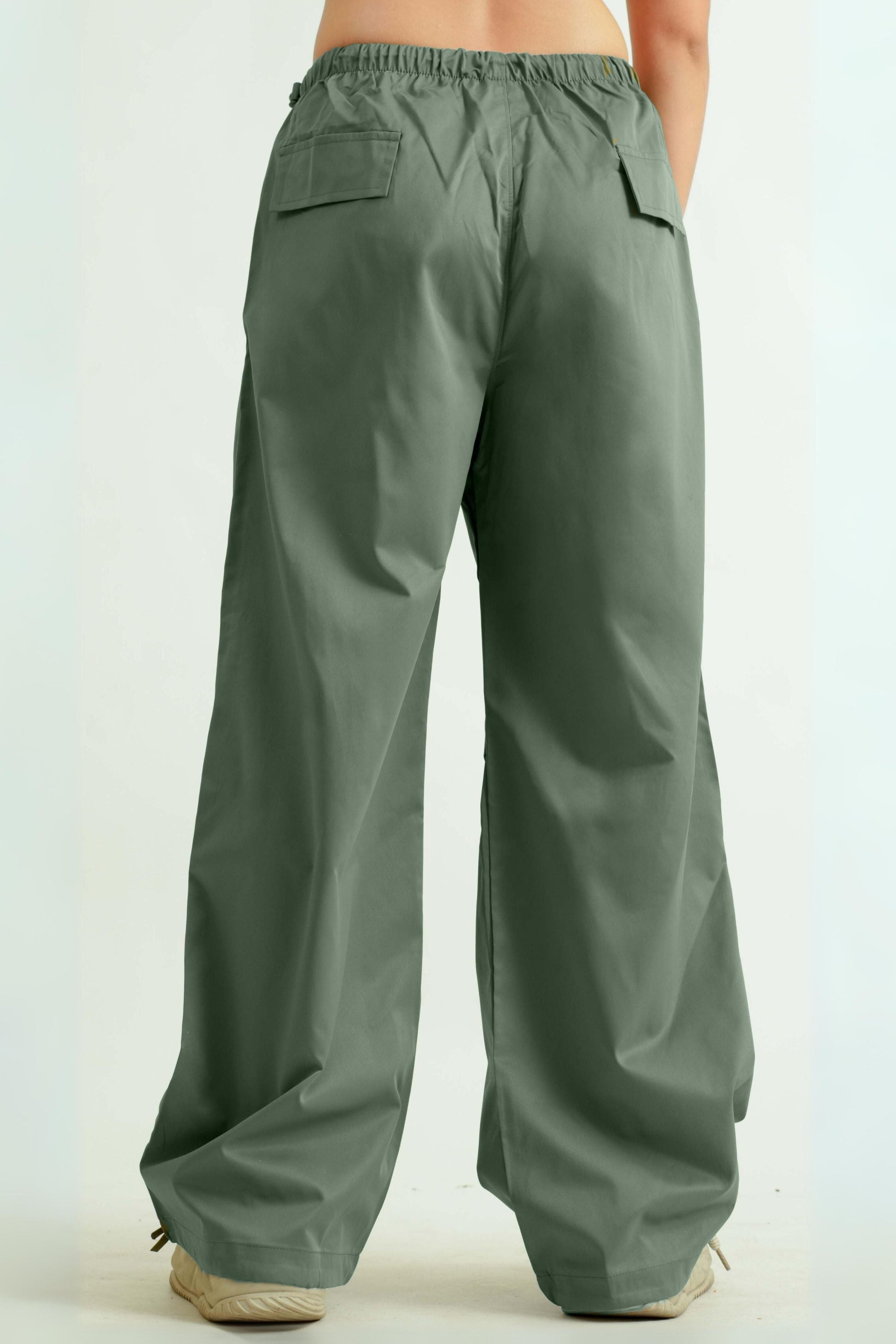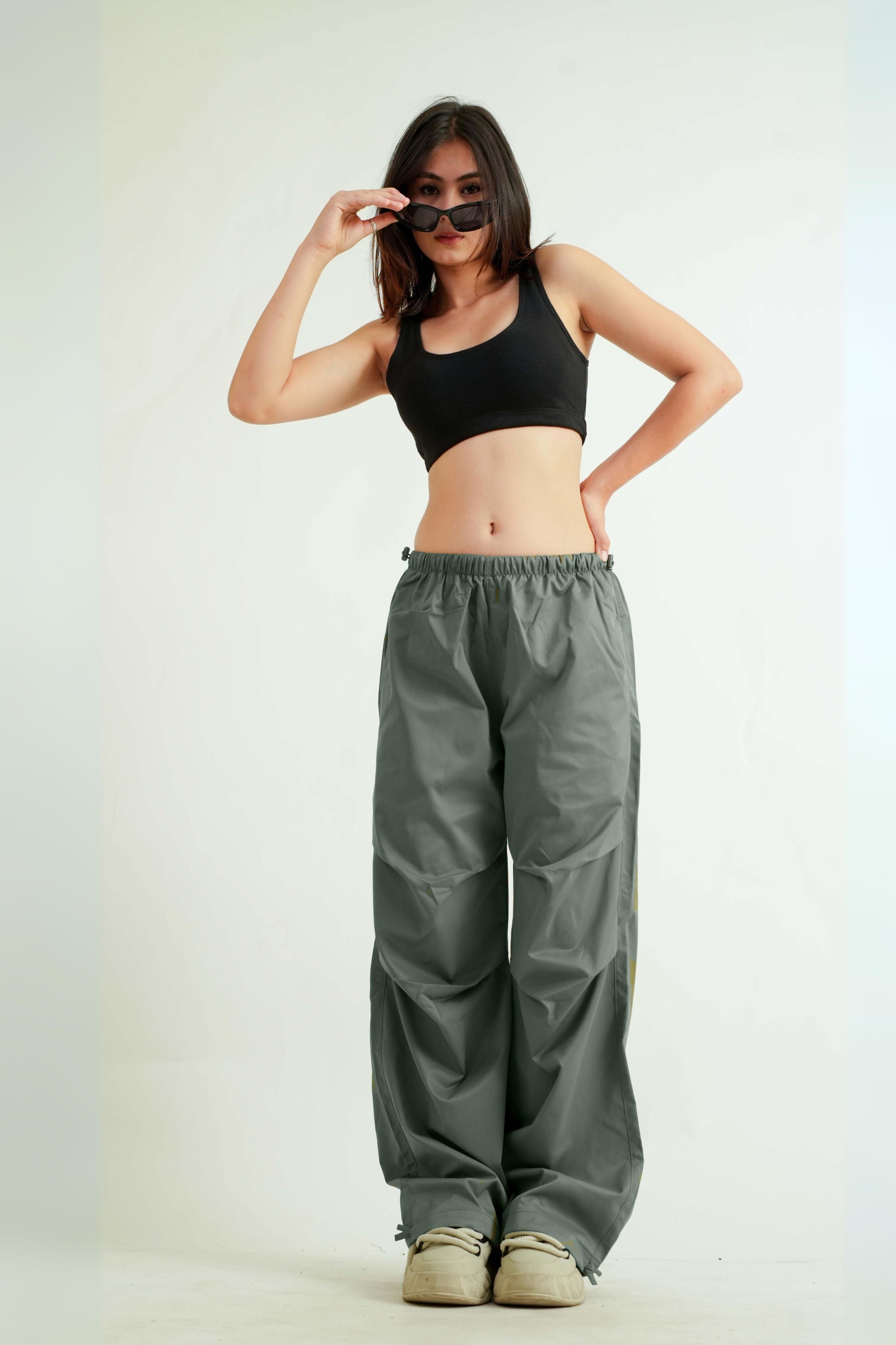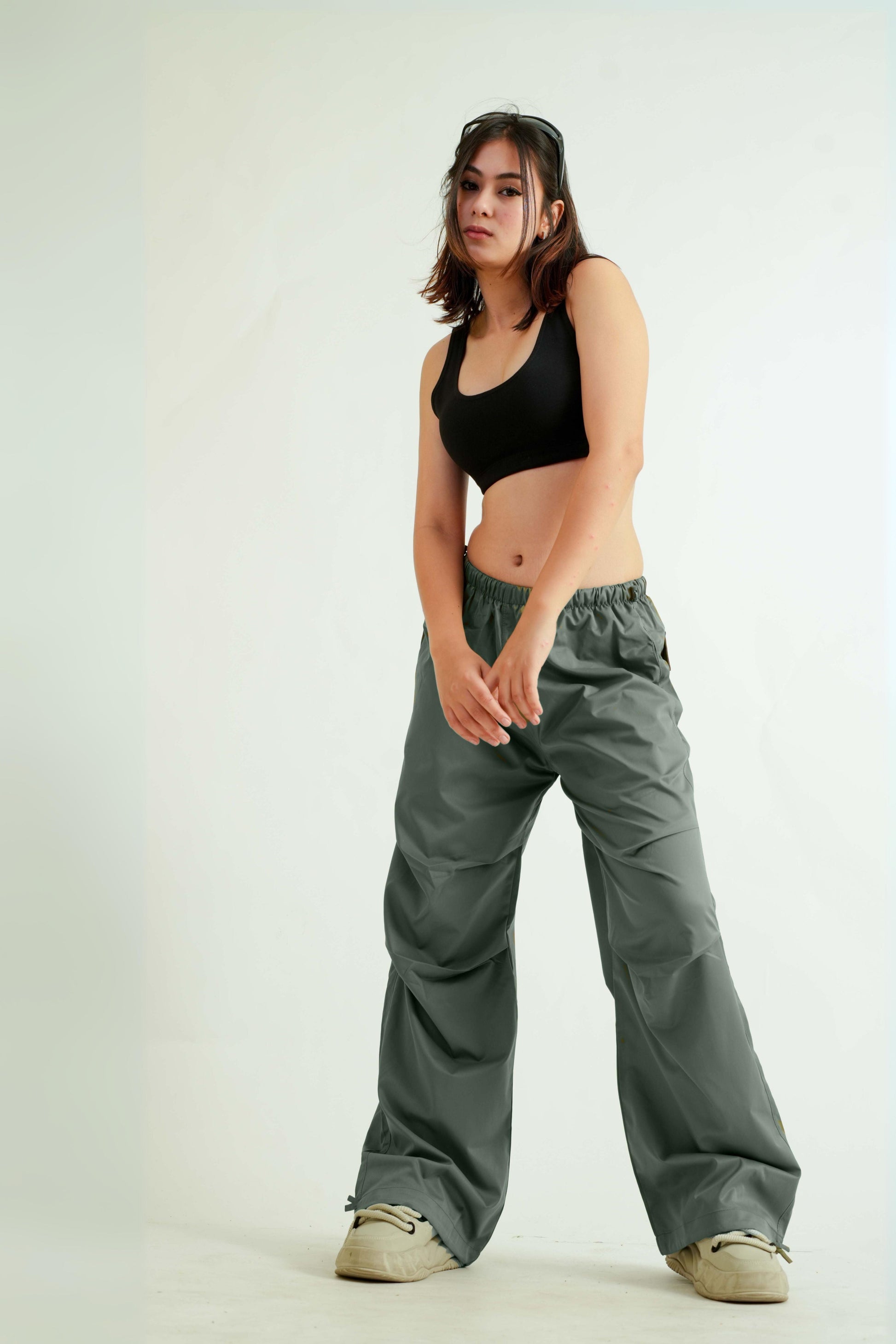 Burger Parachute Pants (Dark Olive Grey) For Women