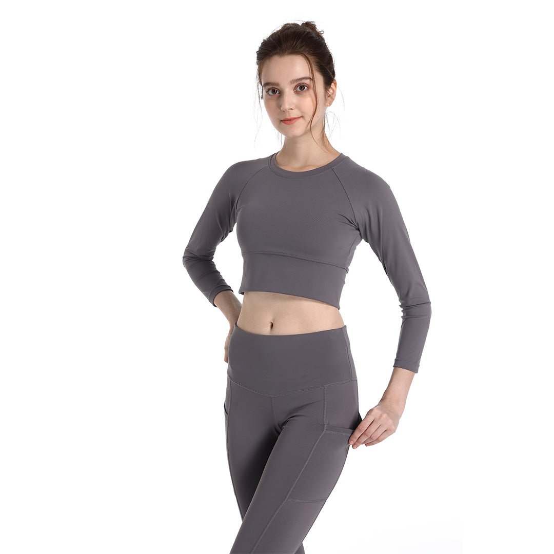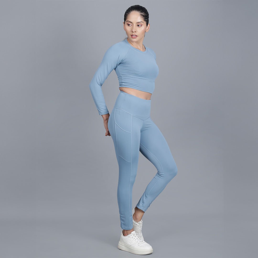 This 2-piece full sleeves yoga set, available in 2 colors, is perfect for the season, offering maximum comfort during workouts. The high-waisted, squat-proof pants feature a secure waistband that won’t slip, ensuring a comfortable and supportive fit throughout your exercise routine.