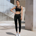 This trendy 2-piece yoga set comes in 2 stylish colors, perfect for your workout sessions. The eye-catching mesh panels on the top and hem of the bottoms add a sultry yet sophisticated touch. The high-waisted pants are squat-proof with a secure waistband that won’t slip during exercise, ensuring both comfort and style.