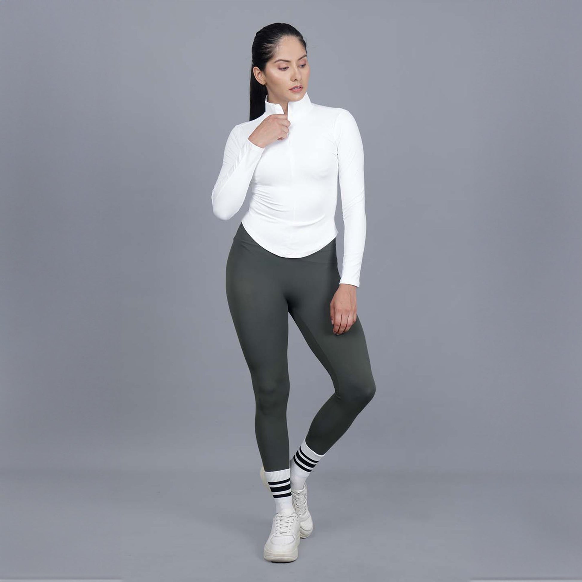 Chiclo Women's Set Featuring Green Tights, White Dri-fit T-shirt & Socks