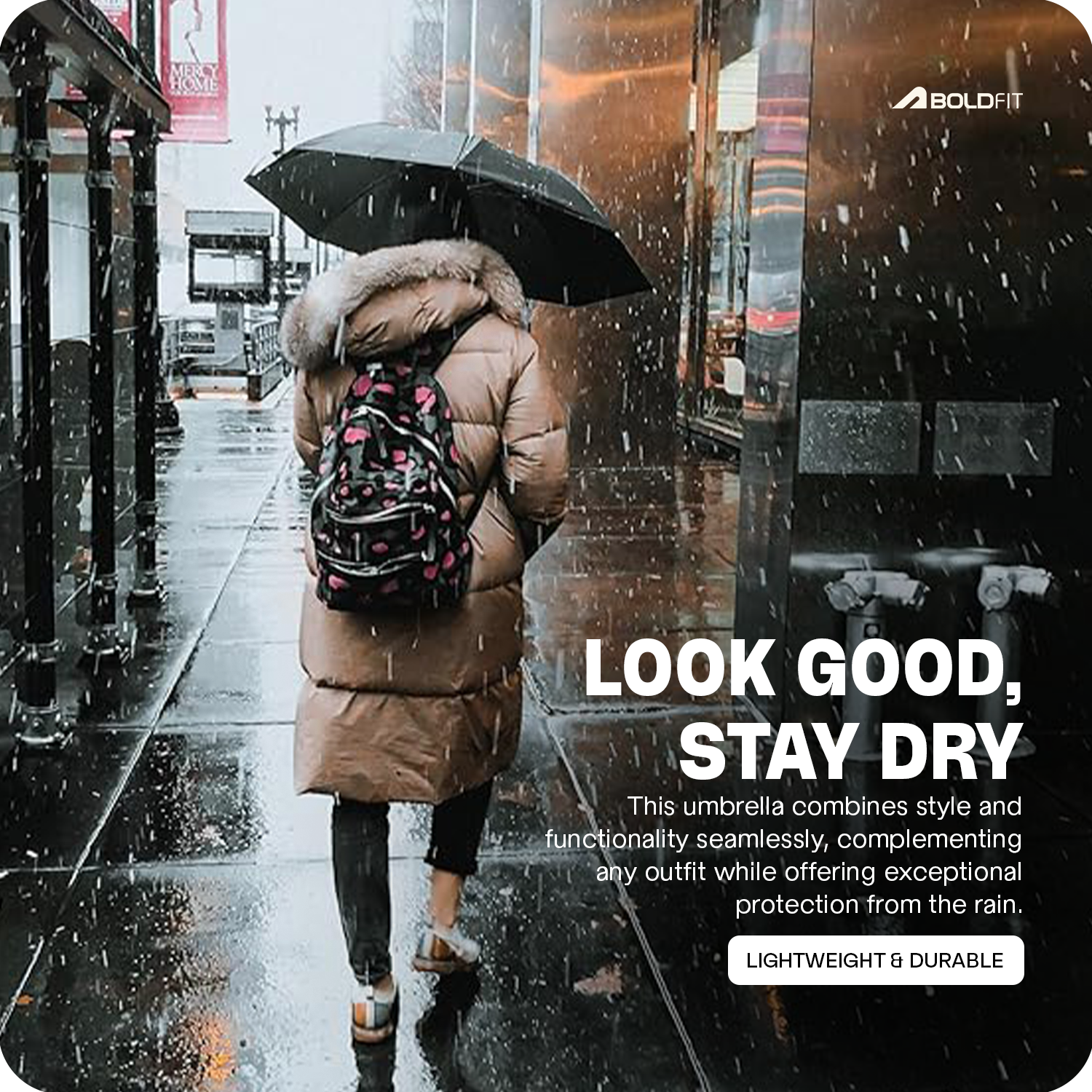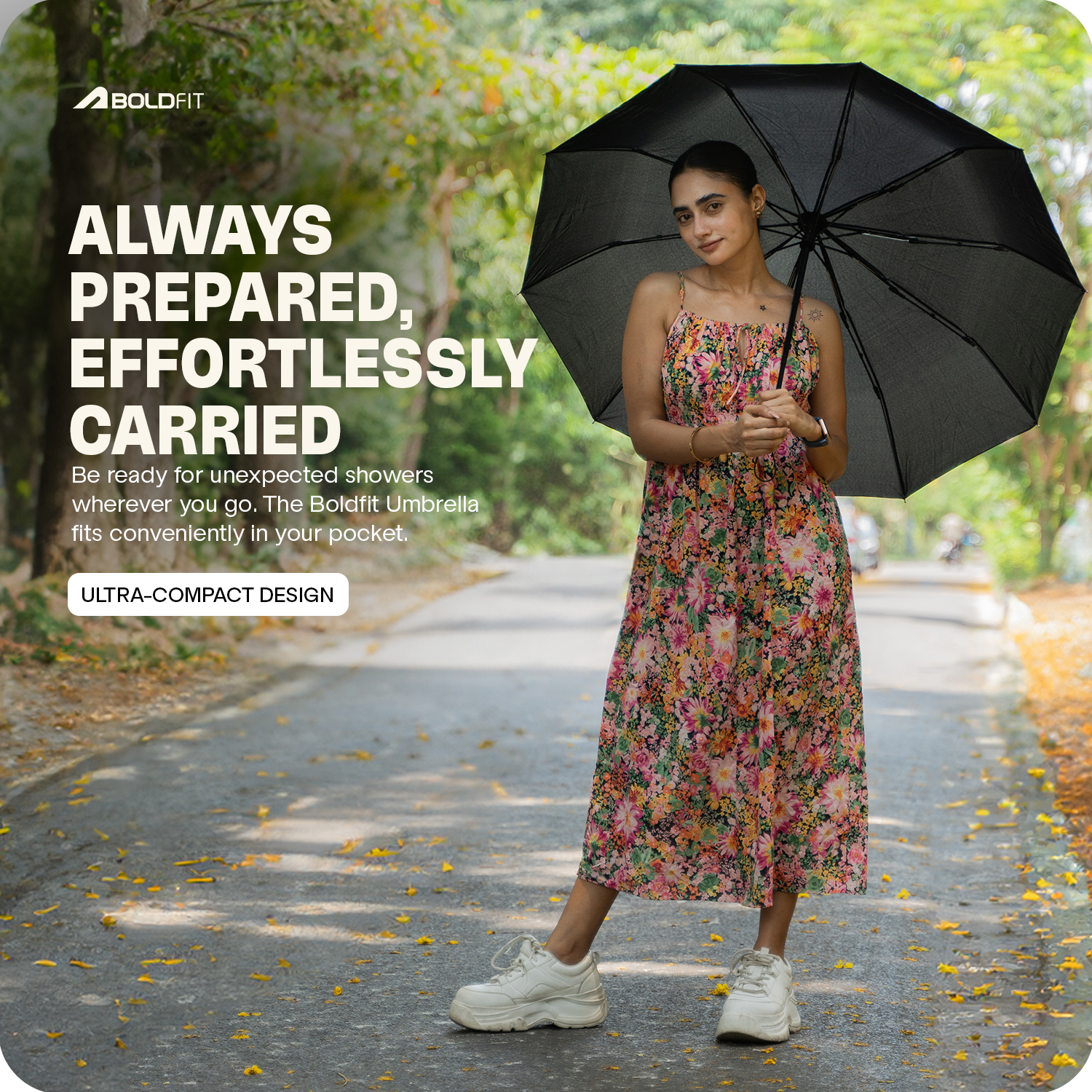 Stay shielded in style with the Boldfit Umbrella, a perfect blend of functionality and elegance. Crafted with durable materials, the umbrella ensures long-lasting use while its lightweight and ergonomic handle provide effortless portability and comfort. Whether you're navigating city streets or heading outdoors, the Boldfit Umbrella is your reliable shield against the elements.