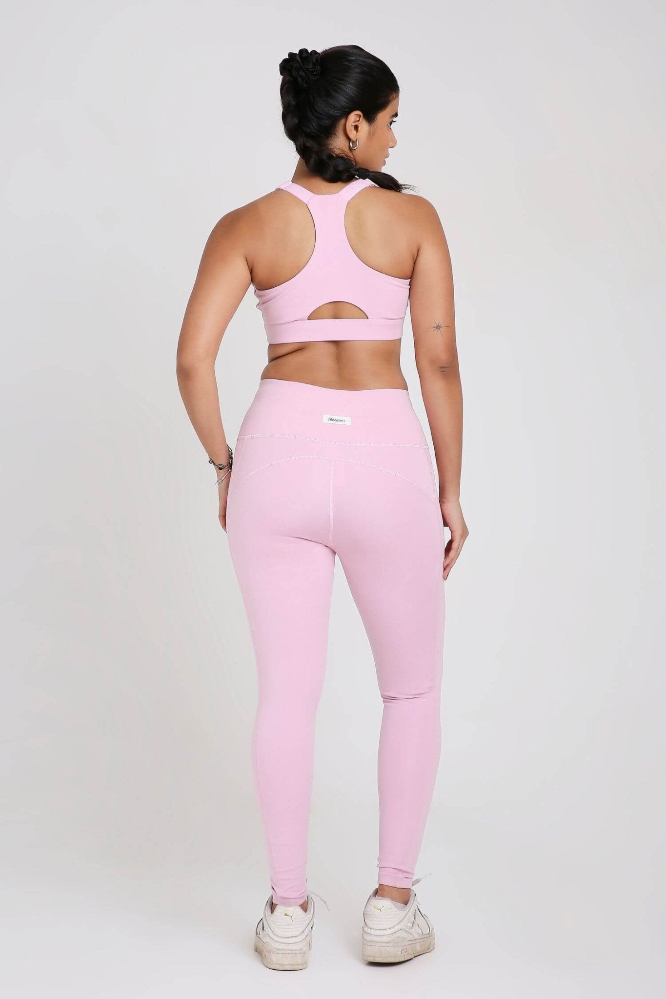 Co-ord Set: Adjustable Straps Sports Bra + Leggings in Cotton Candy 2.0