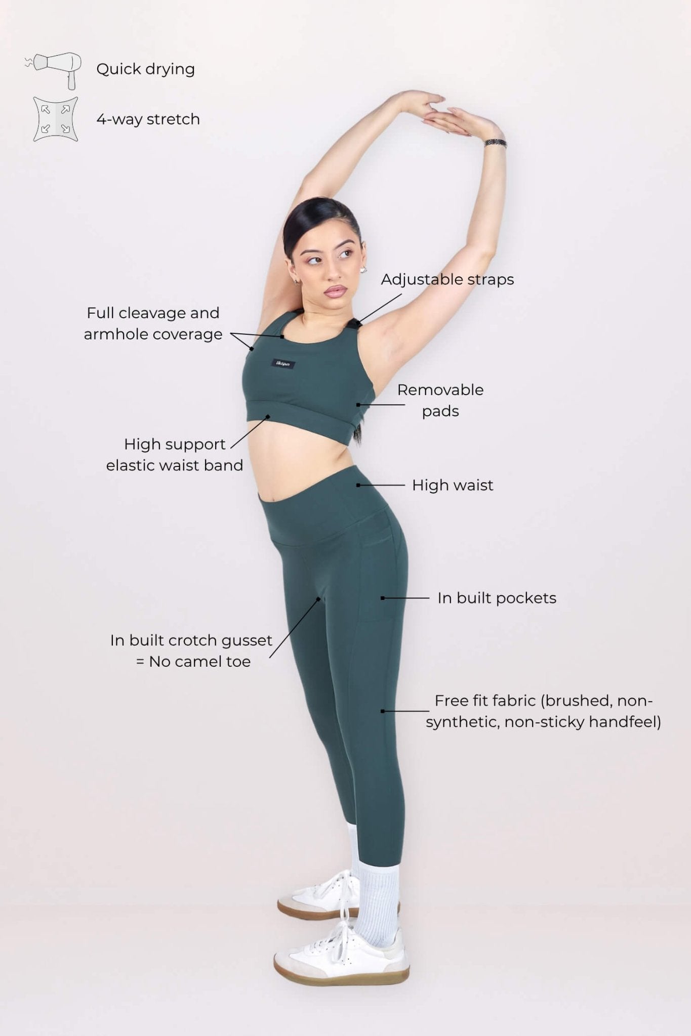 Co-ord Set: Adjustable Straps Sports Bra + Leggings in Jungle Green 2.0