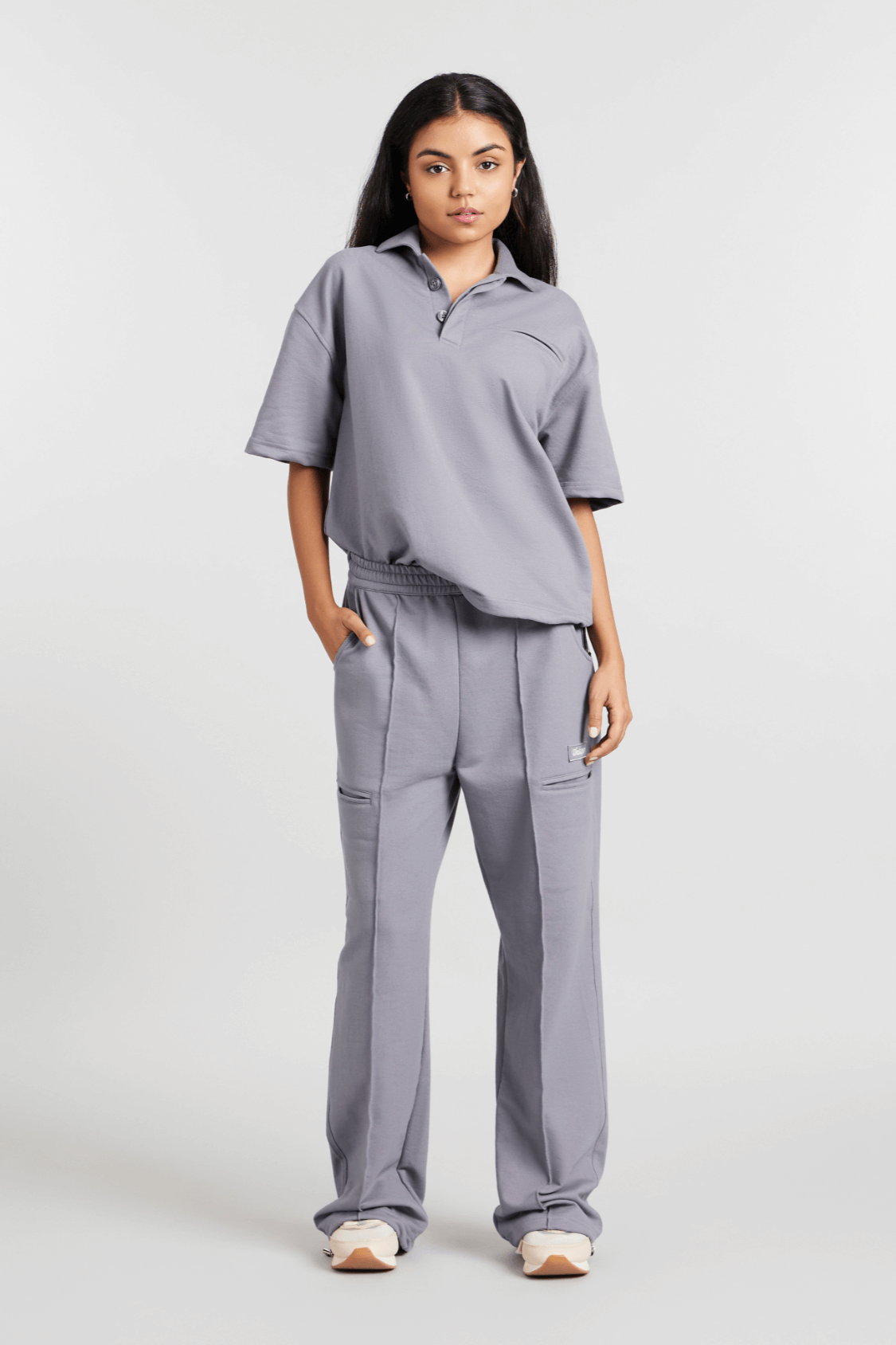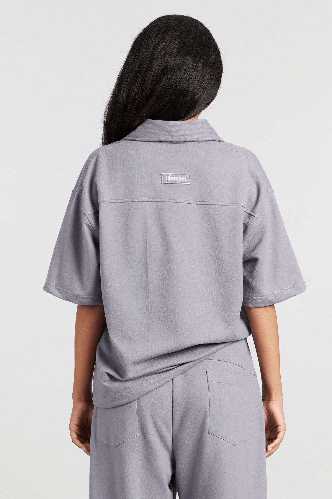 Co-ord Set: Boyfriend's Borrowed Polo Tee & Pants in Grey