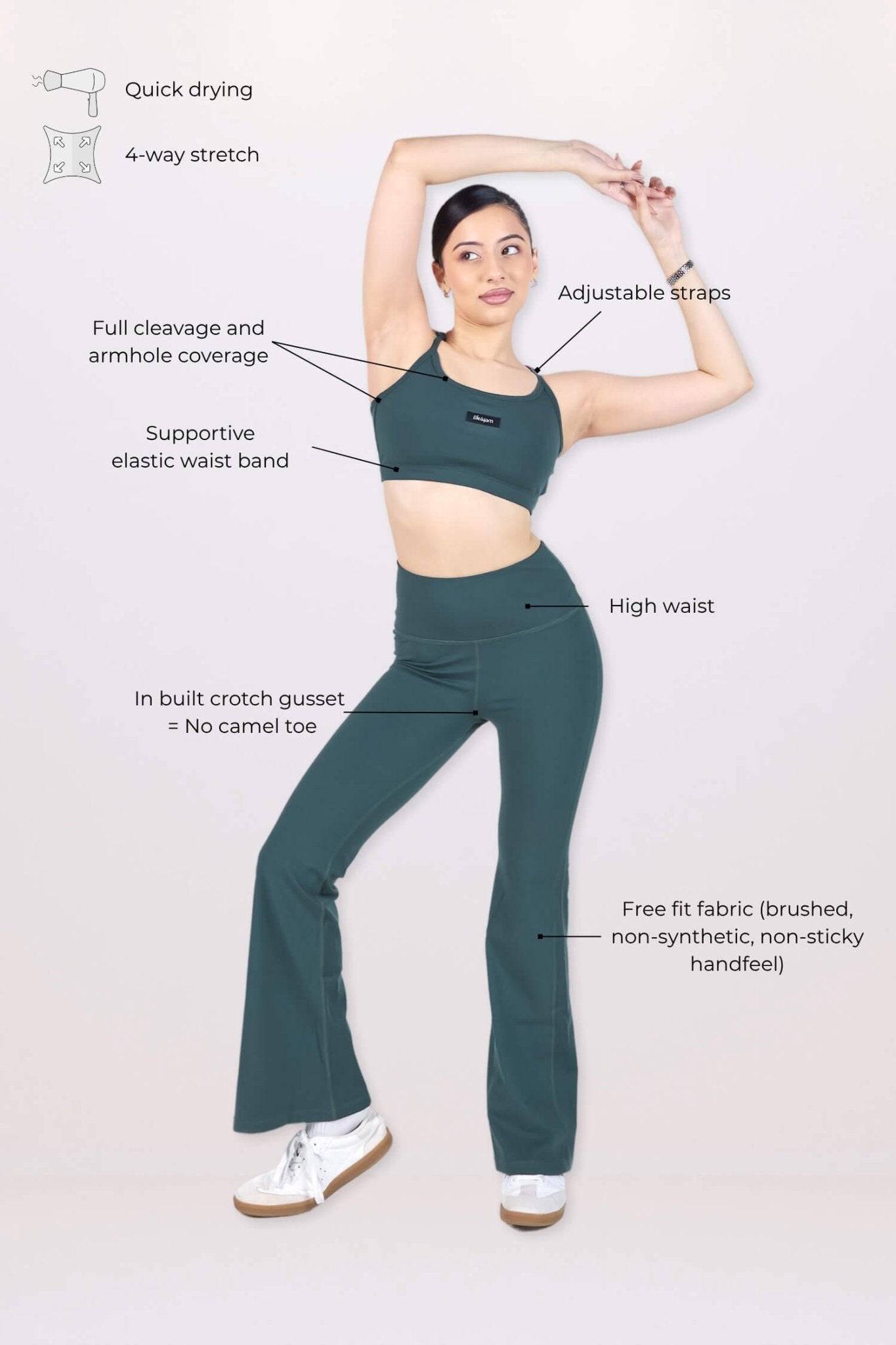 Co-ord Set: Everyday Bralette and Flare Pants Set in Jungle Green