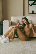 Co-ord Set: Good Girl Code Sports Bra and Flare Pants Set in Mountain Tan