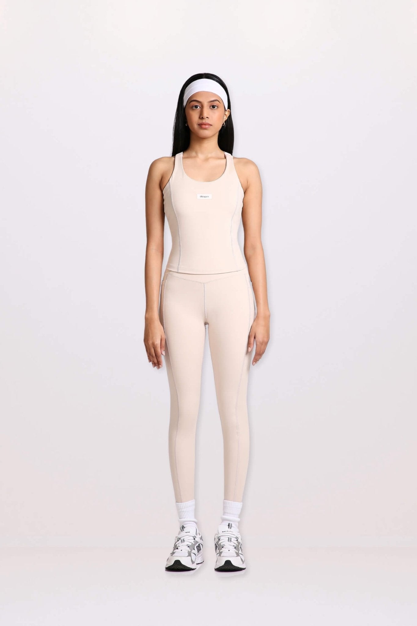 Co-ord Set: Good Girl Code Sports Bra & Cross-Leggings Set in Marshmallow