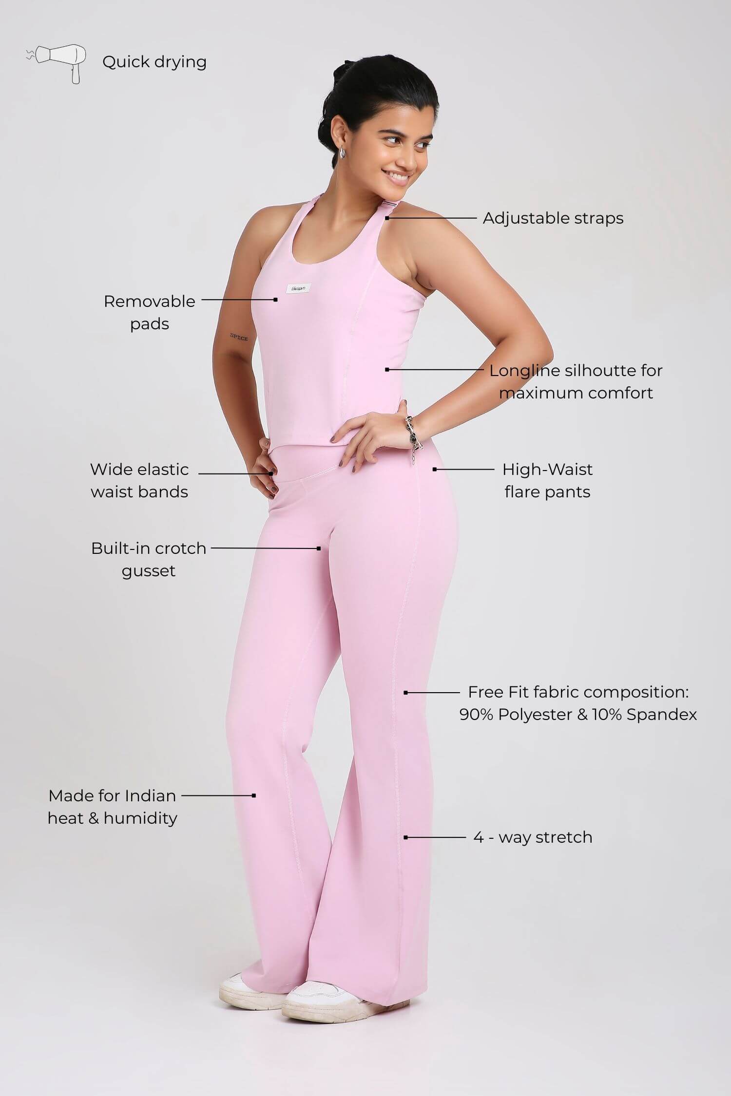 Co-ord Set: Good Girl Code Sports Bra & Flare Pants in Cotton Candy