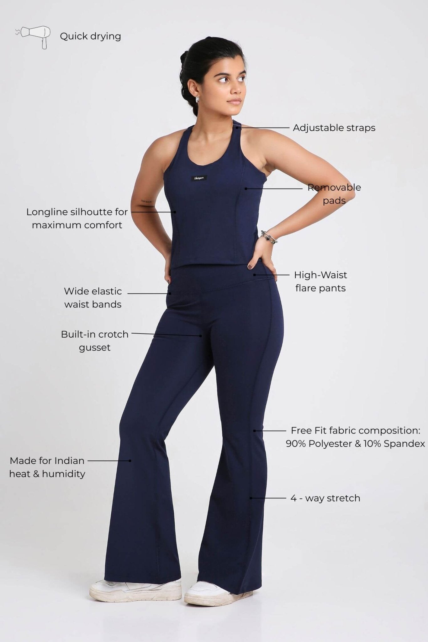 Why You NEED This: High support, maximum comfort, and effortless style—this set does it all. The Good Girl Code Sports Bra keeps you secure with a compressive fit and adjustable straps, while the flare pants serve up a flattering high-waist fit, comfy elastic band, and built-in pockets (because essentials matter). Made from our custom Free Fit fabric, it’s soft, breathable, and built to handle Indian heat & humidity.