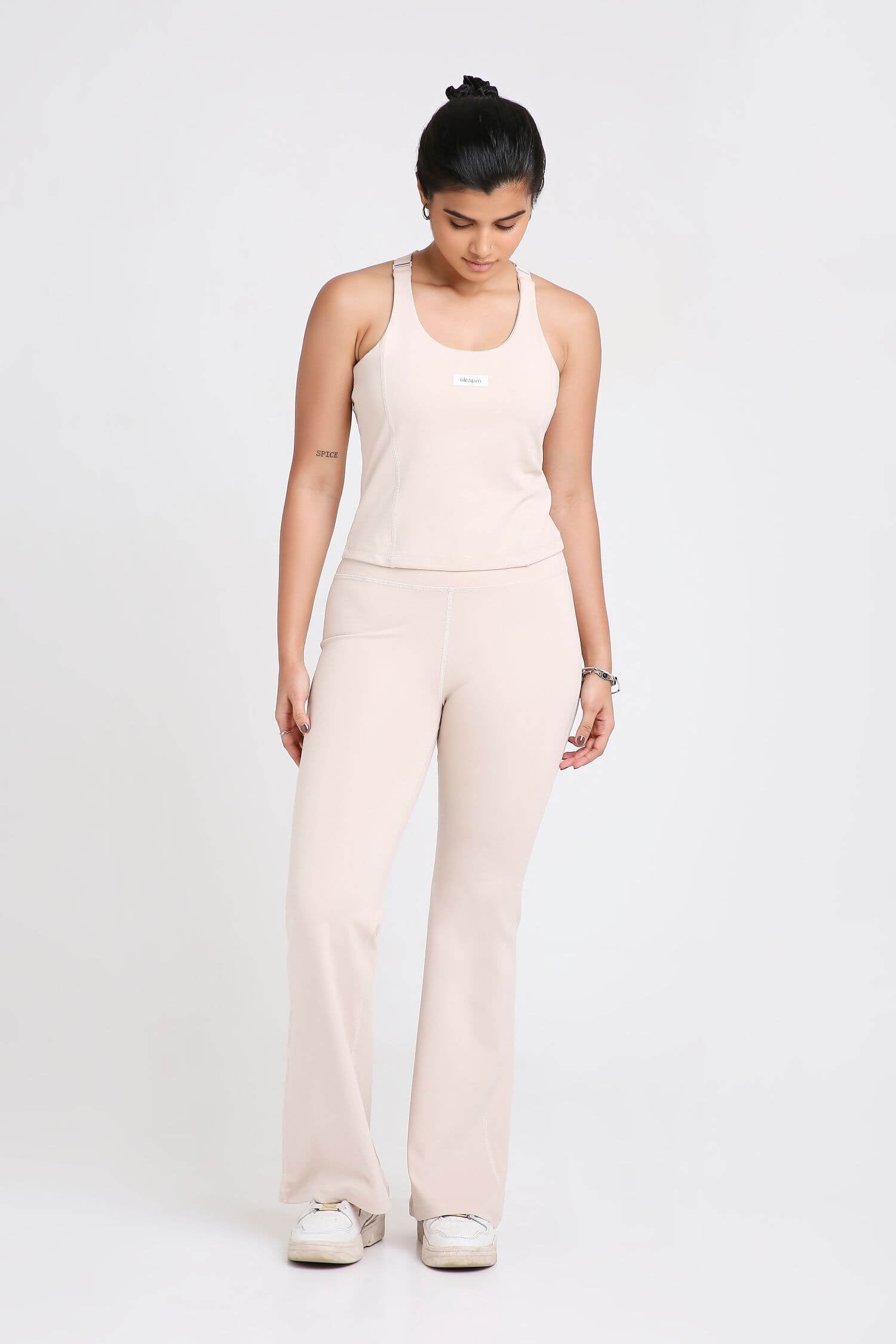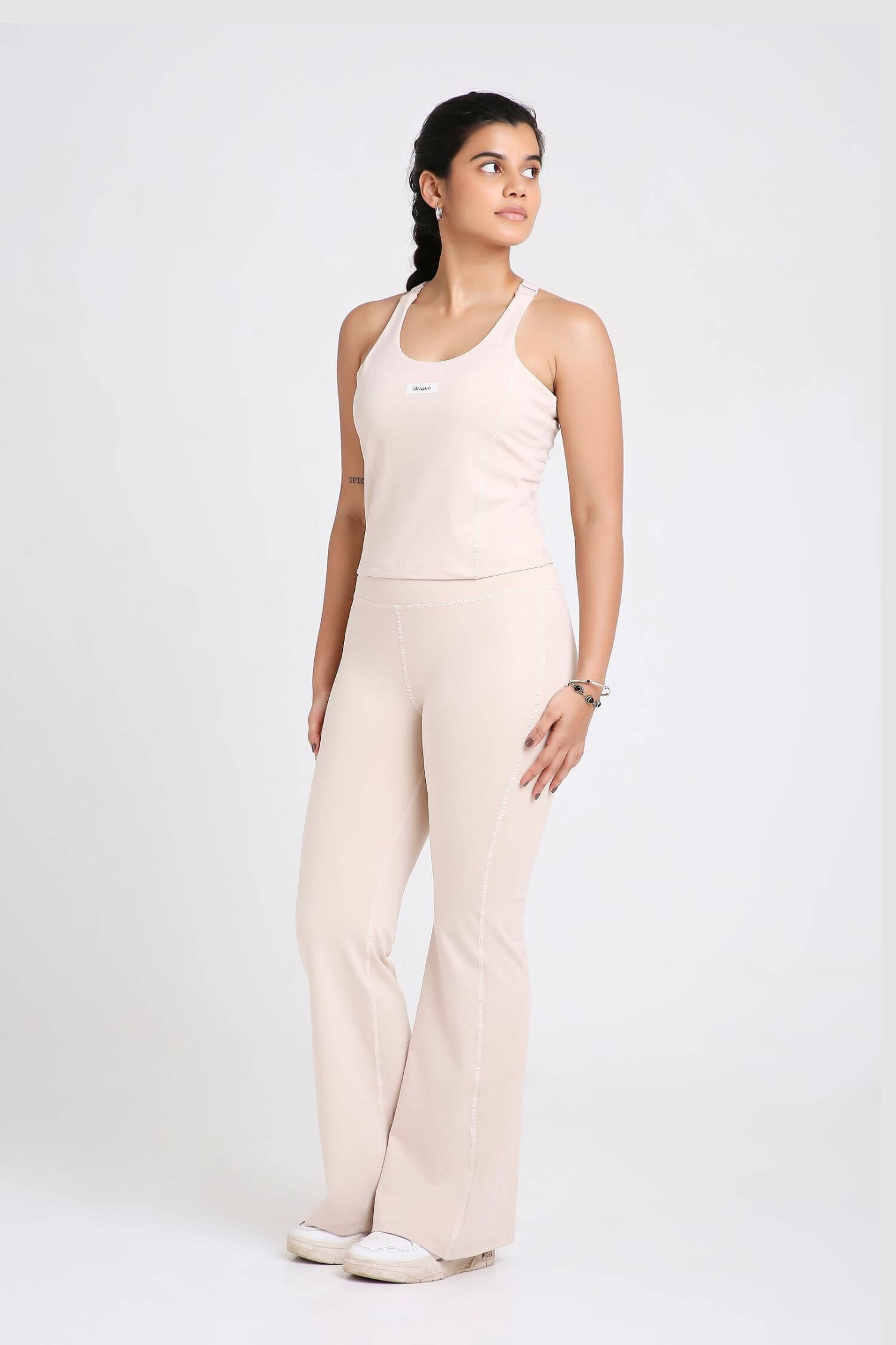 Why You NEED This: High support, maximum comfort, and effortless style—this set does it all. The Good Girl Code Sports Bra keeps you secure with a compressive fit and adjustable straps, while the flare pants serve up a flattering high-waist fit, comfy elastic band, and built-in pockets (because essentials matter). Made from our custom Free Fit fabric, it’s soft, breathable, and built to handle Indian heat & humidity.