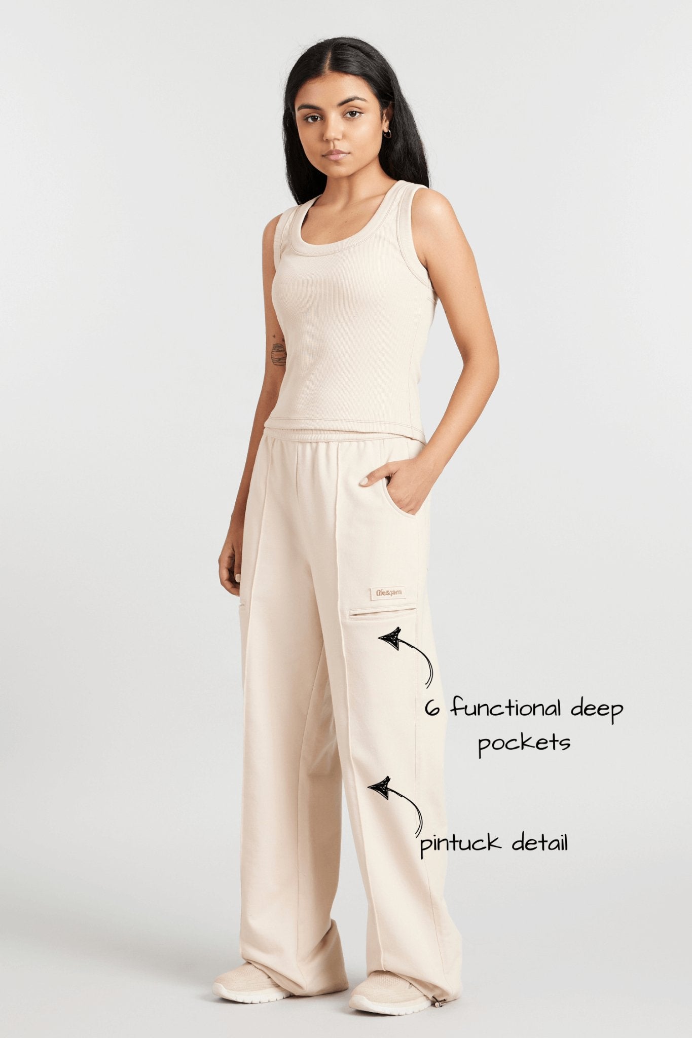 Co-ord Set: Hybrid Tank Tee & Pants in Marshmallow