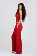 Co-ord Set: Strappy Tank & Loungers in Cherry Red
