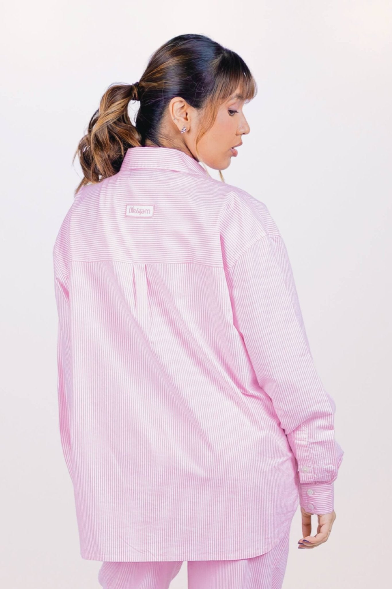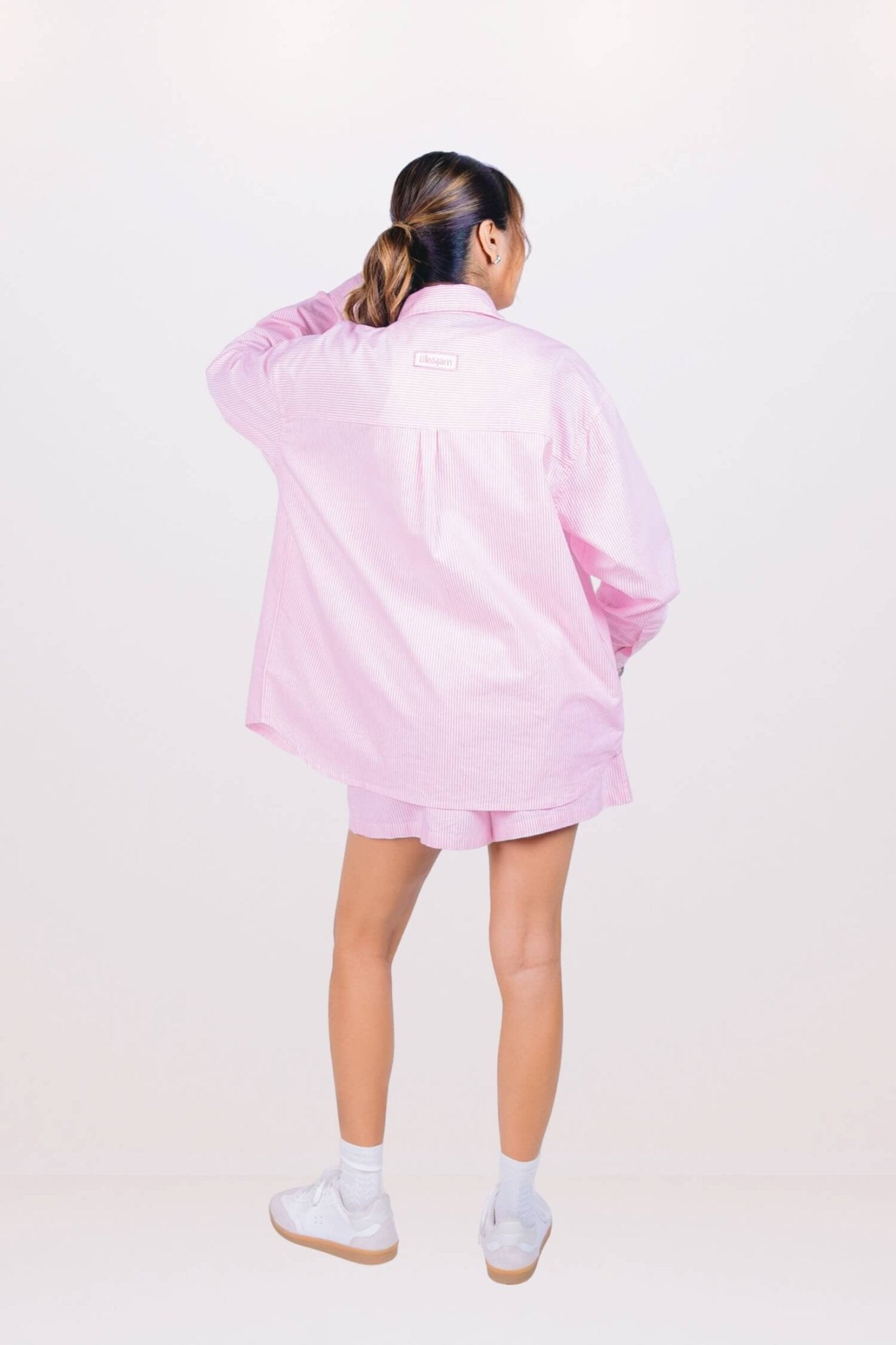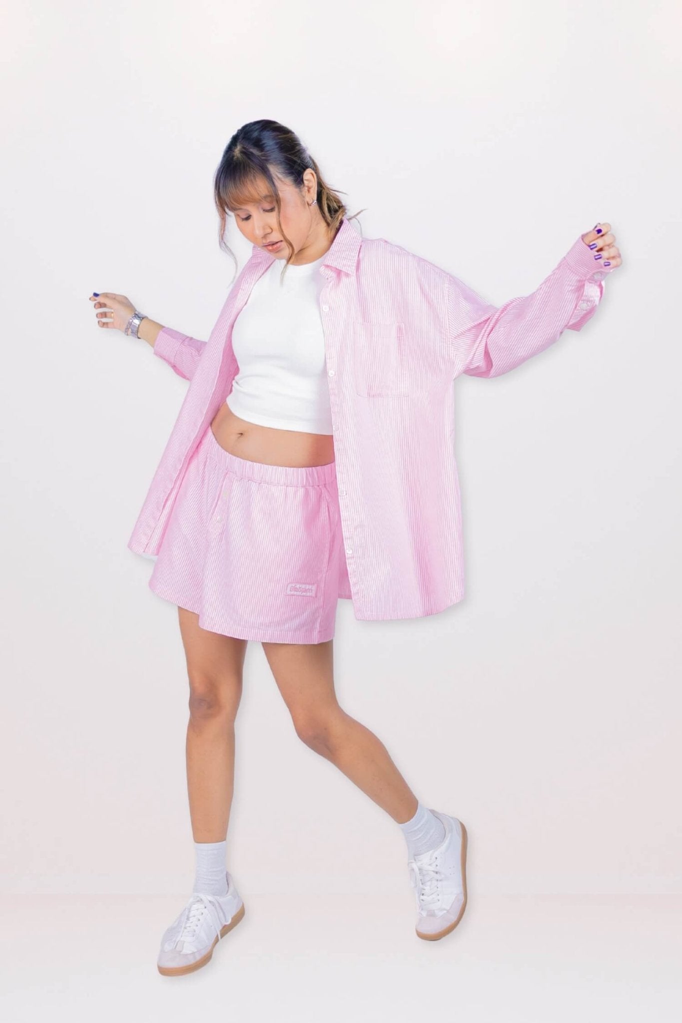 Co-ord Set: Throwover Shirt & Premium Cotton Shorts in Strippy Pink