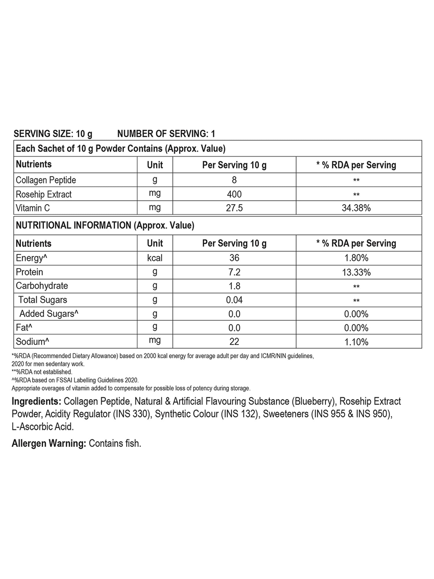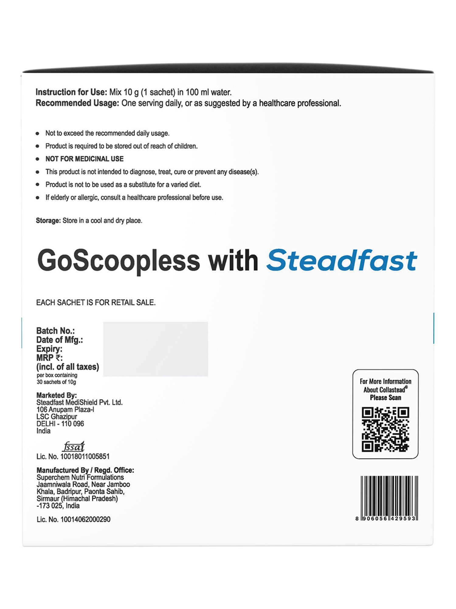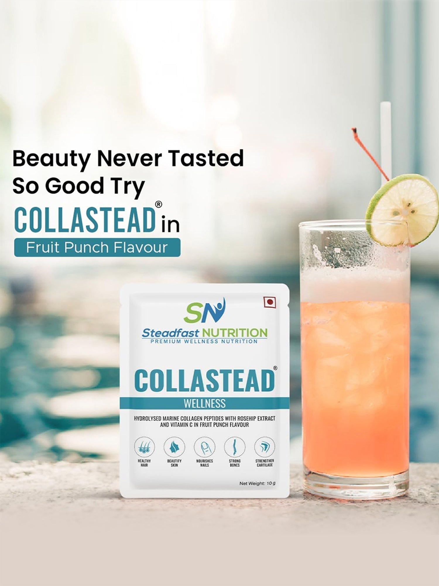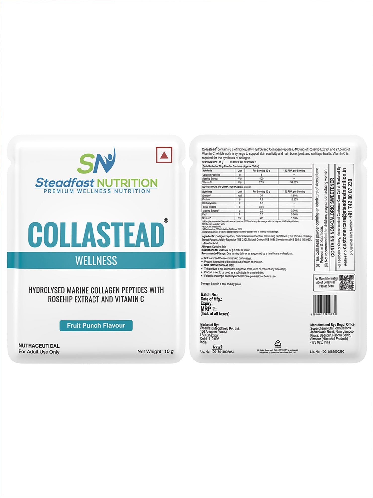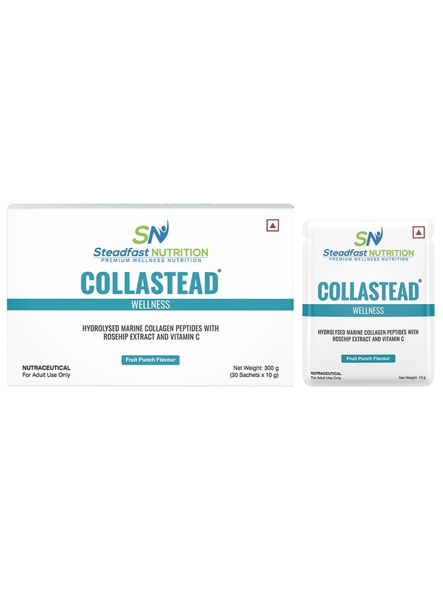 CollaStead contains high-quality collagen peptides derived from marine fish, Rosehip Extract, and Vitamin C, which improve skin elasticity, strengthen hair and keep joints, bones, ligaments, connective tissue, and nails healthy. CollaStead has been formulated scientifically. It is safe and organ-friendly.