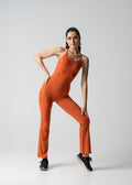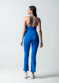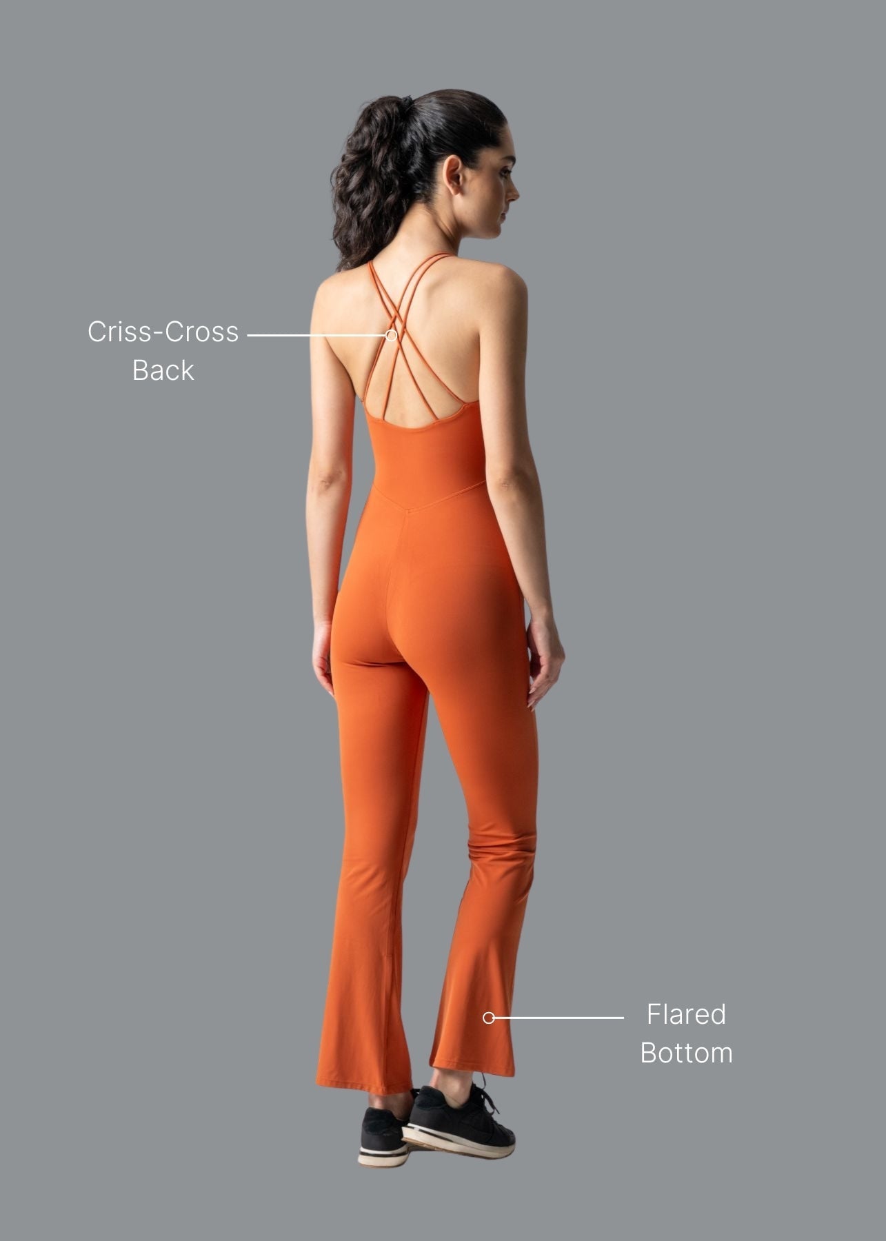 Elevate your activewear wardrobe with this performance-ready women’s jumpsuit, designed for both style and movement. Featuring a trendy criss-cross back, it offers added support with a sporty edge. The flared bottom from the knee creates a flattering silhouette while enhancing mobility for activities like yoga, dance, or studio workouts. Thoughtfully constructed with strategic front cut panels, it provides superior flexibility and comfort. Removable cups allow for a customizable fit, while subtle logo branding adds a sleek, athletic finish. Whether you're hitting the gym or styling it for a casual day out, this jumpsuit blends fashion with function effortlessly.