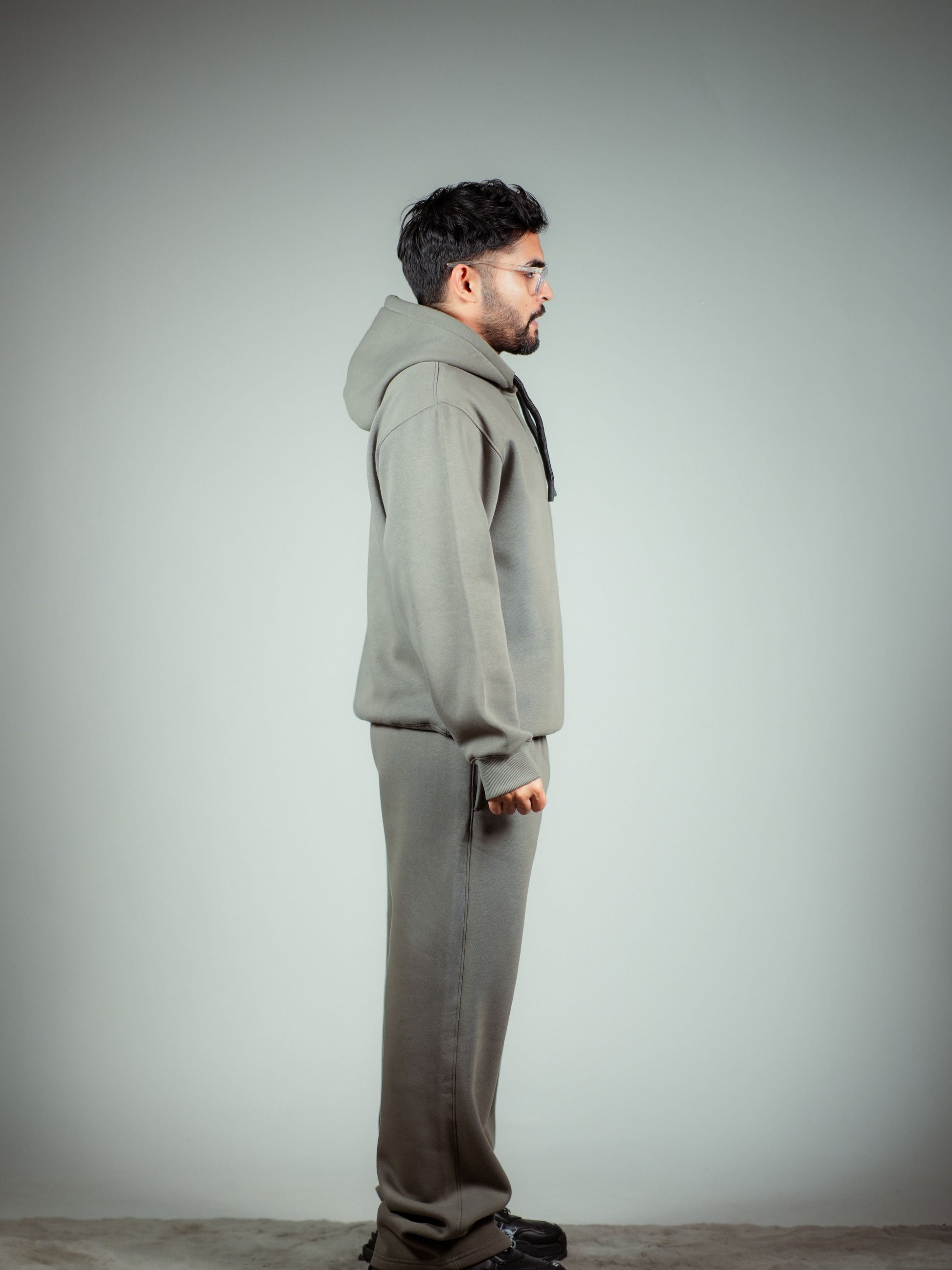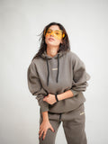 Crafted from premium-quality fabric, the relaxed-fit hoodie features an adjustable drawstring hood and a minimalist logo detail, adding a subtle yet stylish touch. The coordinated joggers offer a comfortable fit with a structured look, making them perfect for casual outings, lounging, or layering up for a cozy vibe.