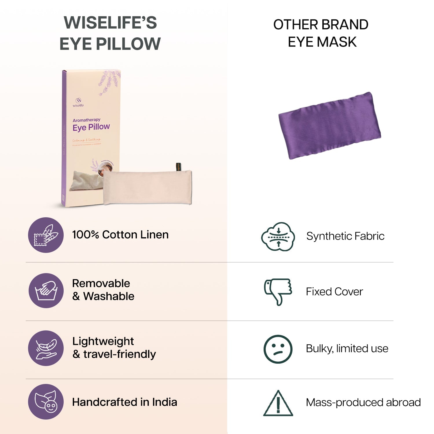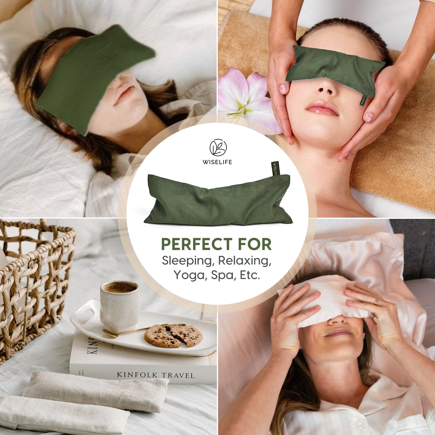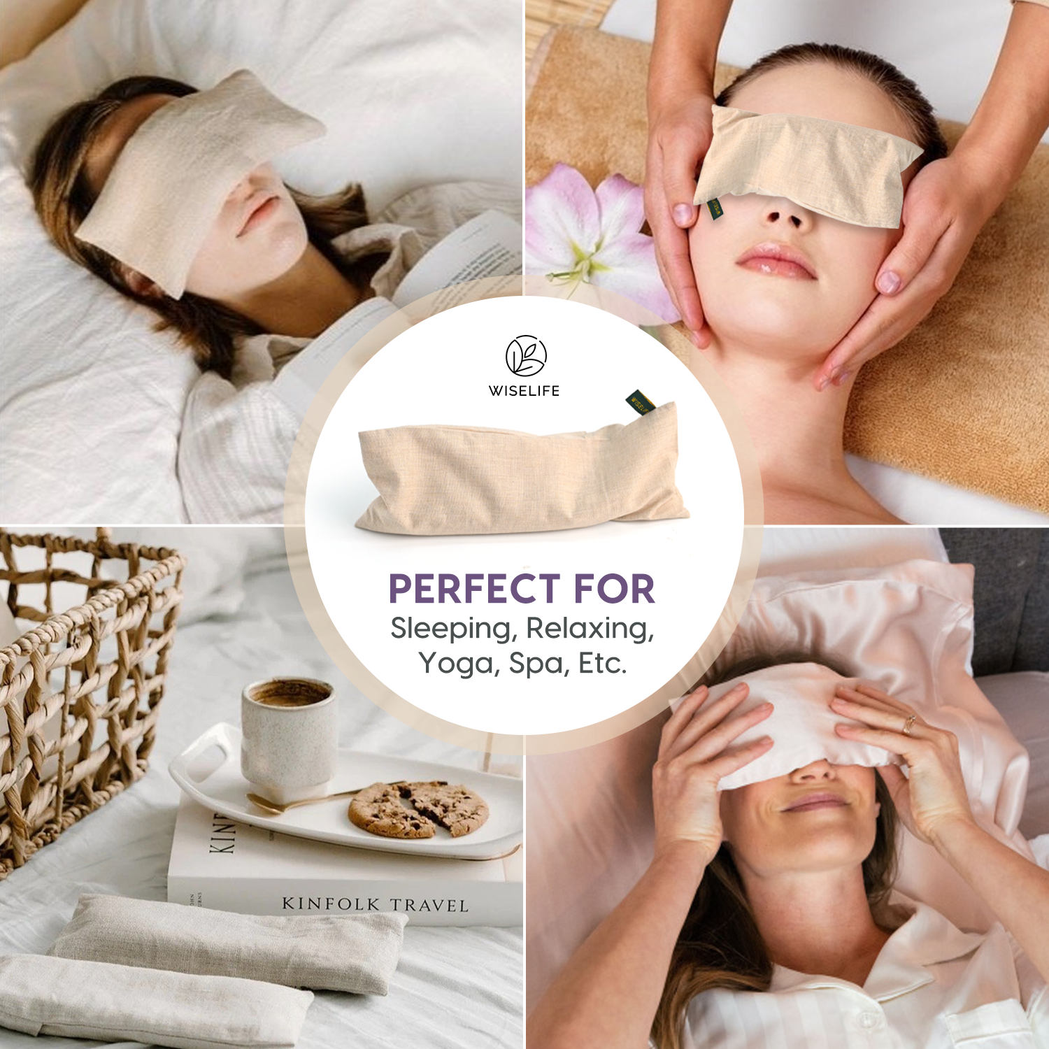 This soothing eye pillow is made from high quality 100% cotton linen for ultimate comfort and relaxation. Filled with flaxseeds, it molds perfectly to any face shape and retains heat to gently soothe tired eyes. The small size makes it ideal for travel or keeping by your bedside. Its soft, plush exterior and smooth inner lining create an indulgent at-home spa experience while unwinding with a good book or catching up on rest. Flaxseeds shift freely within the pillow, allowing you to find the perfect pressure point for relieving stress and tension in the eye area. Whether easing eye strain after long days or simply relaxing with an afternoon nap, this eye pillow is the perfect addition to your self-care routine.