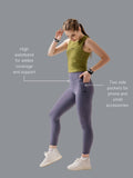 Designed for performance and style, these leggings feature a curved yoke panel at the back, sculpting a sleek, athletic silhouette. The high waistband provides extra coverage and support, ensuring a secure fit for any movement. Stay hands-free with two side pockets, perfect for carrying your phone and essentials. The ankle-length design allows full flexibility, while reflective logo branding enhances visibility for low-light workouts.