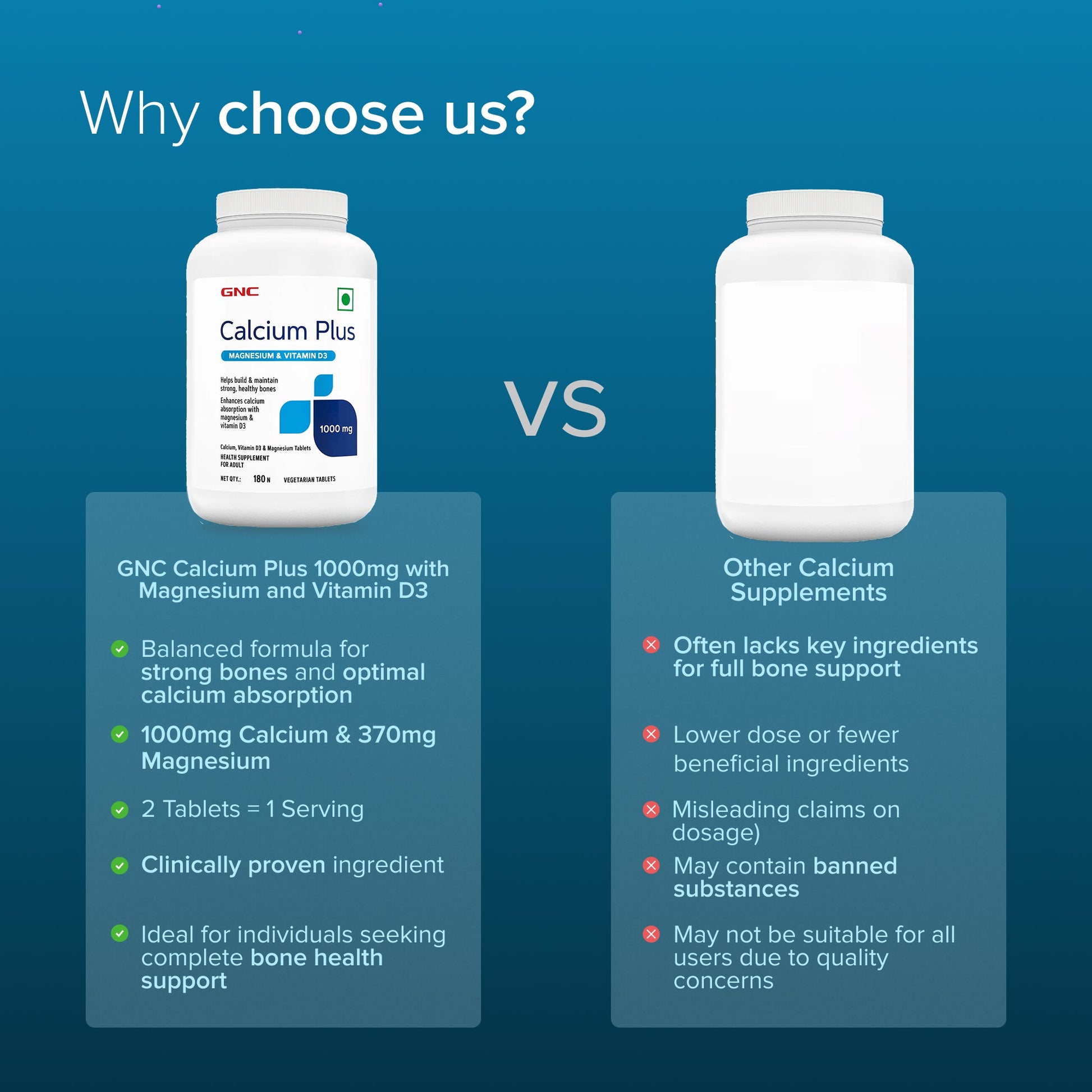 GNC Calcium Plus With Magnesium & Vitamin D3 | Strengthens Bones | Supports Strong Teeth | Promotes Healthy Muscle Contraction | Formulated in USA | 1000mg Per Serving | 180 Capsules