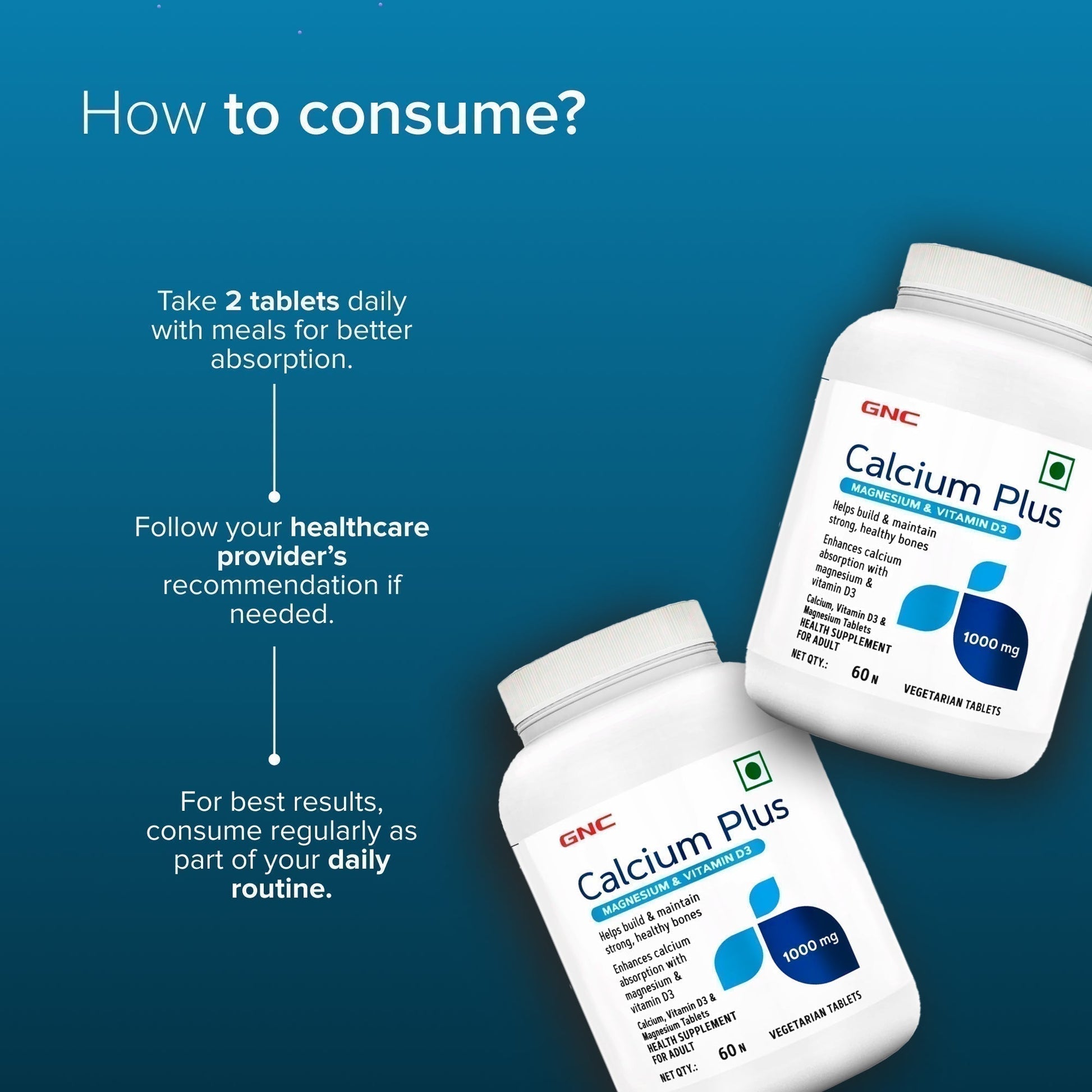 GNC Calcium Plus With Magnesium & Vitamin D3 | Strengthens Bones | Supports Strong Teeth | Promotes Healthy Muscle Contraction | Formulated in USA | 1000mg Per Serving | 60 Capsules